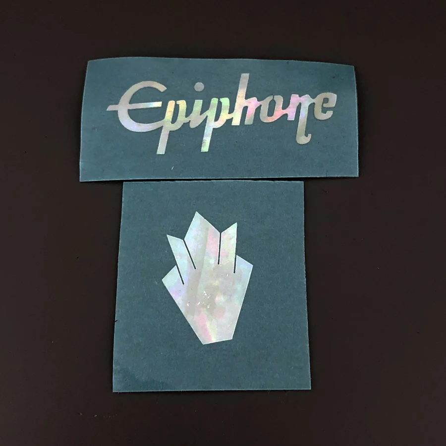 Imagine transforming your guitar’s headstock with this eye-catching decal that combines elegance and reflection. Crafted with a shimmering mother-of-pearl finish, this high-quality self-adhesive sticker features the iconic “Epi” logo in a stylized, cursive font, reflecting vibrant colors and shifting hues as you turn it. Below it, a detailed crown or crest design adds a regal touch, both decals measuring perfectly for a seamless fit on your instrument. Made from durable composite materials, these decals are incredibly easy to apply via water slide or self-adhesive methods. Lightweight at only 0.1 mm thick, they ensure no added weight or bulk. Elevate your guitar’s style instantly with this premium, reflective accessory.