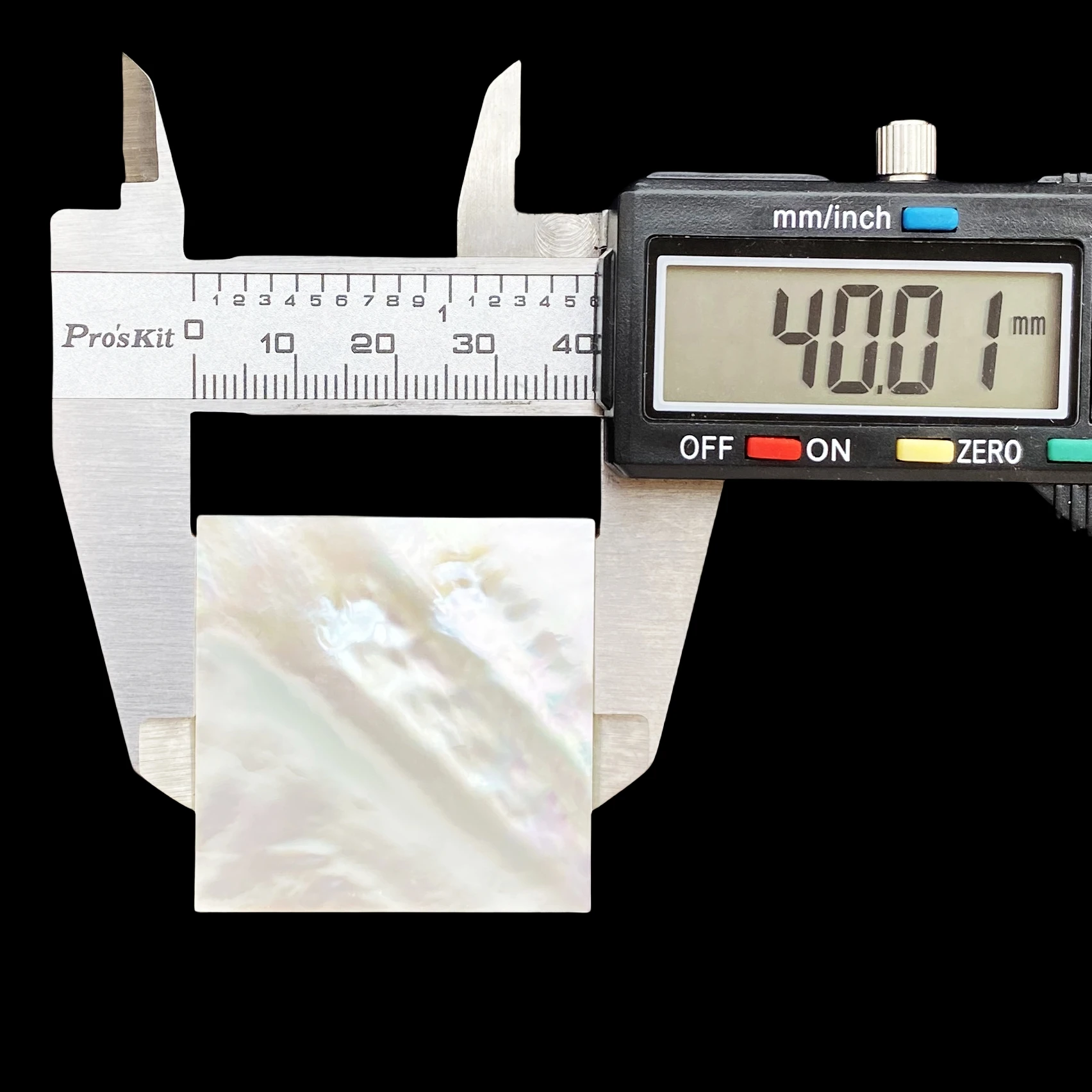 Discover the elegance of this 40mm x 40mm x 2mm rectangular mother of pearl shell slab, featuring a polished, glossy surface that accentuates its luminous, white iridescence. Both sides are impeccably smooth and reflective, showcasing the natural beauty of the shell with subtle variations that create a pearl-like sheen. Its clean, straight edges provide a refined, precise shape perfect for DIY jewelry, inlay work, or craft projects. Crafted from natural shell material, this versatile piece adds a touch of sophistication and luminous appeal to your handmade creations, elevating any design with a subtle shimmer and timeless elegance.