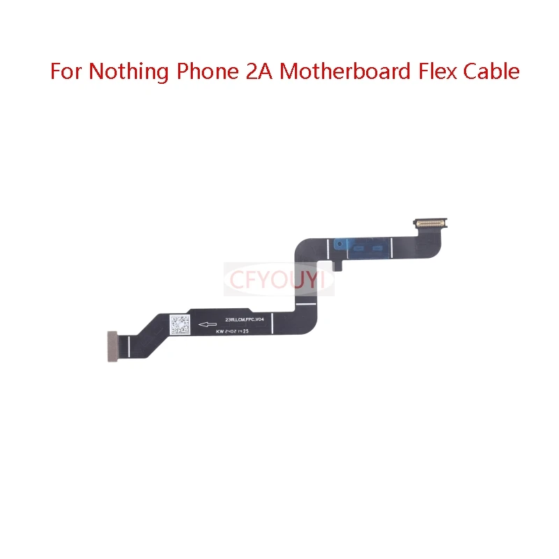 Experience seamless repairs with this high-quality motherboard flex cable designed specifically for the Nothing Phone 2A. Crafted with precision, this flat, black ribbon cable ensures perfect alignment for your LCD and home button connections. Its slim, rigid profile and smooth edges make installation easy and efficient. The subtle white markings and gray components highlight its manufacturing accuracy, while the gold-plated connectors provide secure electrical contact. This replaceable part guarantees original functionality, restoring your phone's performance. Manufactured by CFYOUYI and tested for high standards, it’s an essential component for anyone seeking a durable, reliable fix. This cable not only enhances your device's longevity but also maintains a streamlined, professional look inside your phone.
