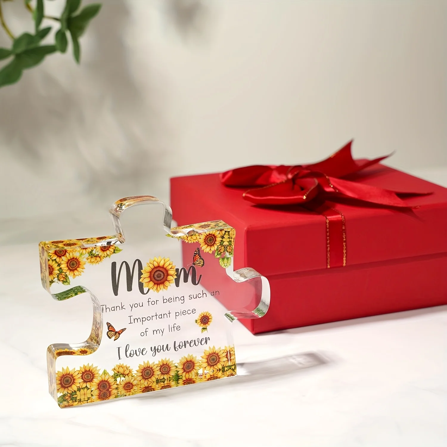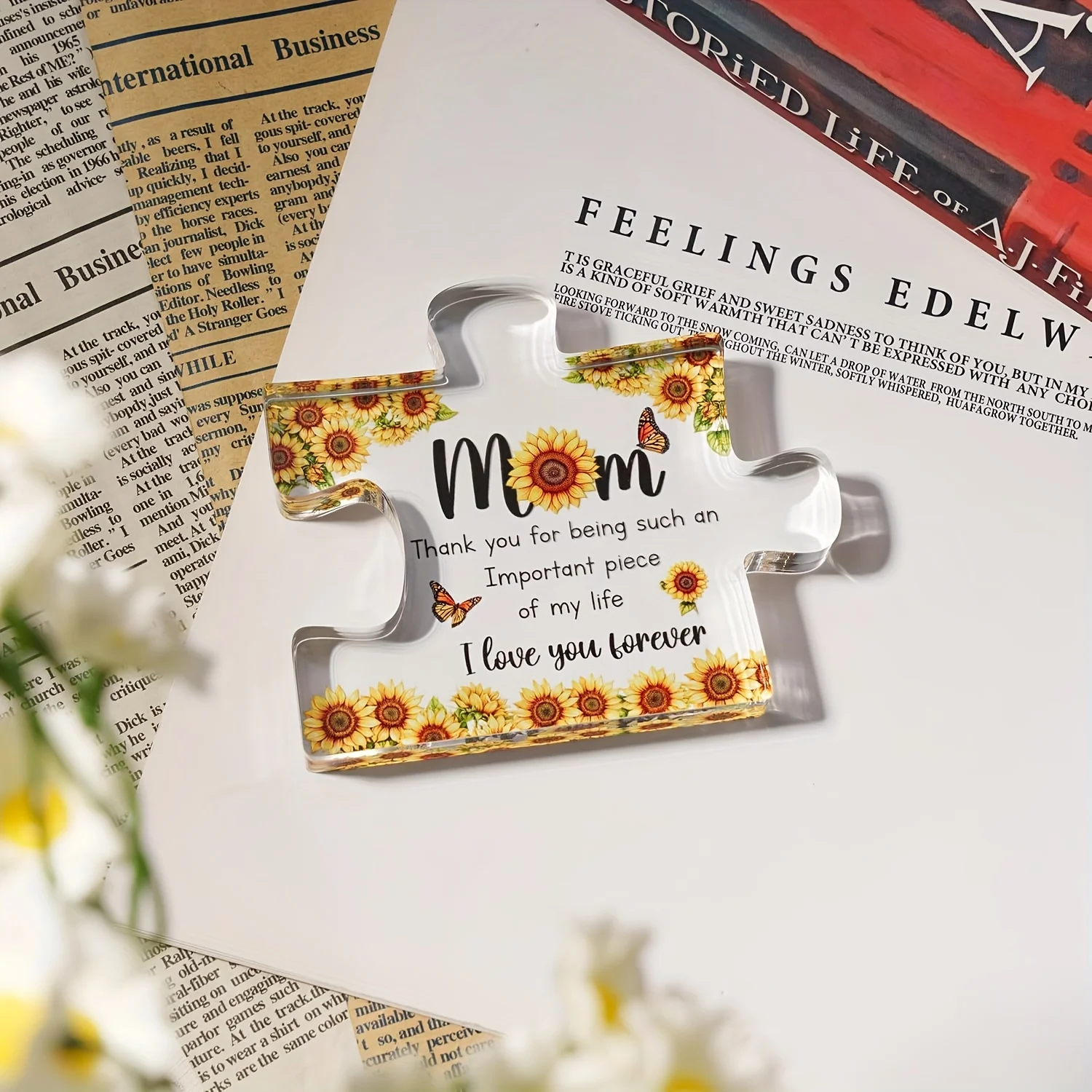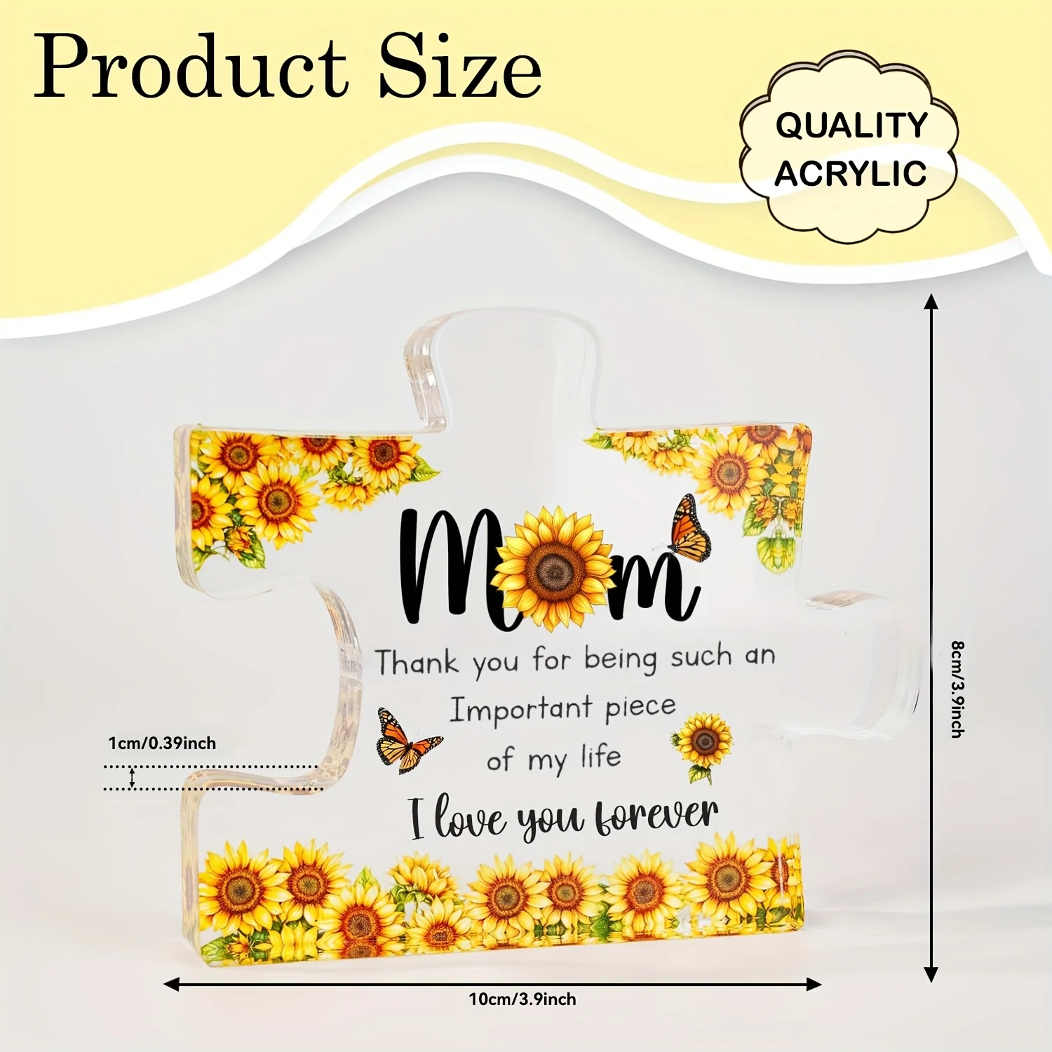 Celebrate your love and gratitude by gifting this charming acrylic puzzle piece today. Whether displayed in a cozy home or a professional space, it keeps your special message close. Perfect for honoring Mom’s importance in your life, this piece is a timeless reminder of your affection. Make this Mother’s Day unforgettable with a gift that beautifully combines vivid design, heartfelt sentiment, and quality craftsmanship. Show her how much she truly means to you—she will cherish it forever.