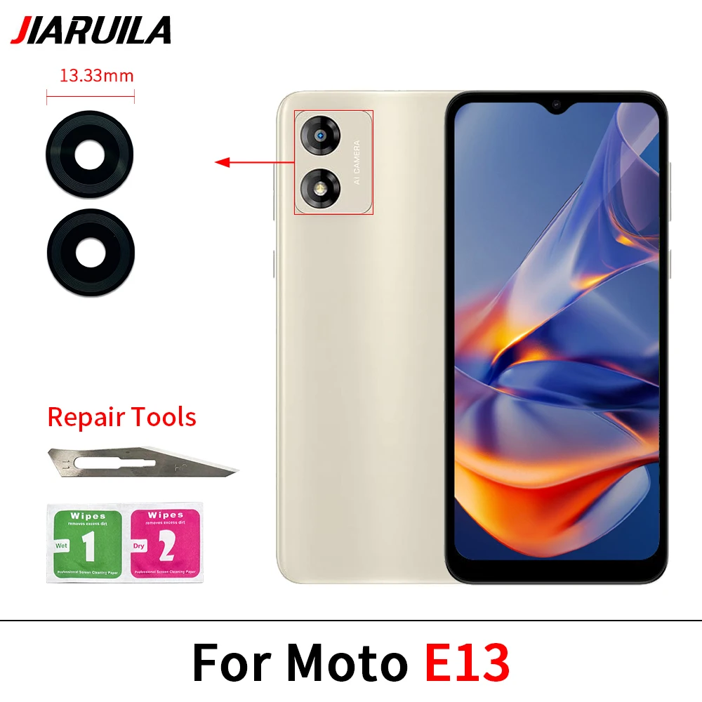 Experience a seamless upgrade with this high-quality rear camera glass lens kit designed specifically for Motorola models. Crafted from premium glass, these lenses offer exceptional clarity and durability, ensuring your camera captures sharp images every time. The sleek, minimalist design features a glossy finish that reflects light subtly, adding a touch of sophistication to your device. The included adhesive glue guarantees a secure fit, making the installation process straightforward. Complemented by precision repair tools and a helpful sticker, this kit makes replacing your damaged or scratched rear lens simple and efficient. Whether you own an E6S, E13, or Edge 40 Neo, this kit restores your phone's camera to optimal performance. Trust this product to deliver long-lasting, pristine camera coverage.