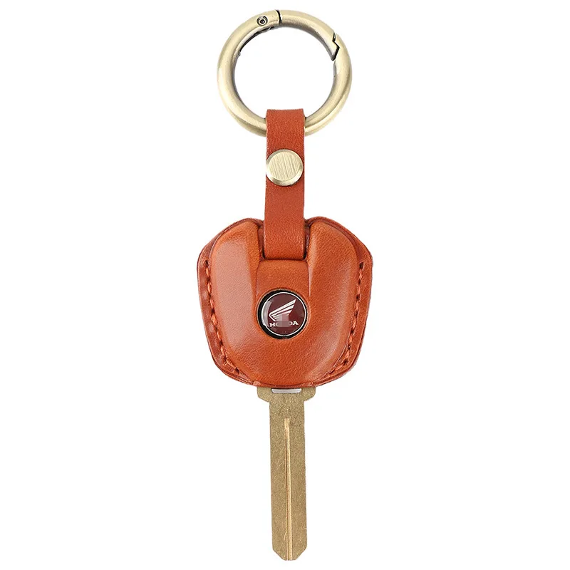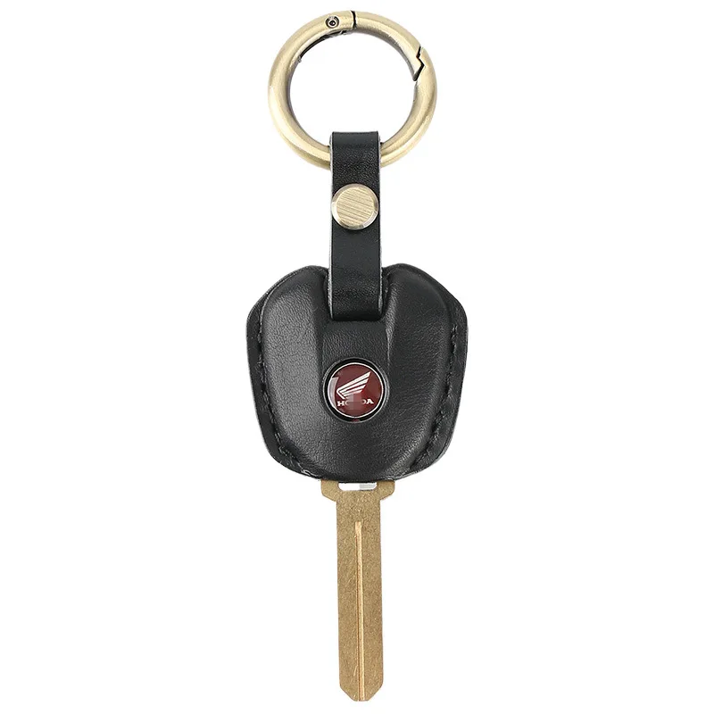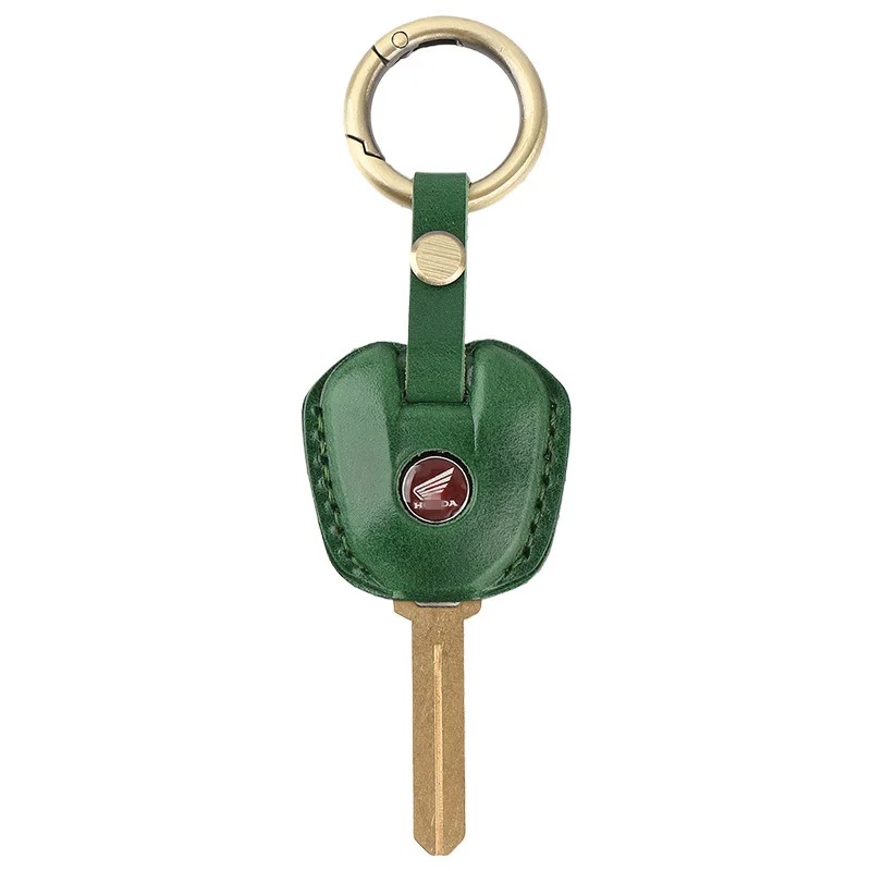 Experience the elegance and functionality of this Motorcycle Leather Key Cover, perfectly tailored for Honda models such as CBr650, CB550, and NC750. Crafted from top-layer leather, each cover showcases a smooth finish that sets a premium standard. Available in four striking colors: vibrant red, warm brown/orange, classic black, and rich dark green, they provide not only protection for your keys but also a stylish accessory. The rounded and contoured shape ensures a comfortable grip, enhancing your everyday experience. With a secure brass-toned metal ring attached via a leather strap and snap button mechanism, you can confidently carry your keys while enjoying the aesthetics and durability these covers offer.
