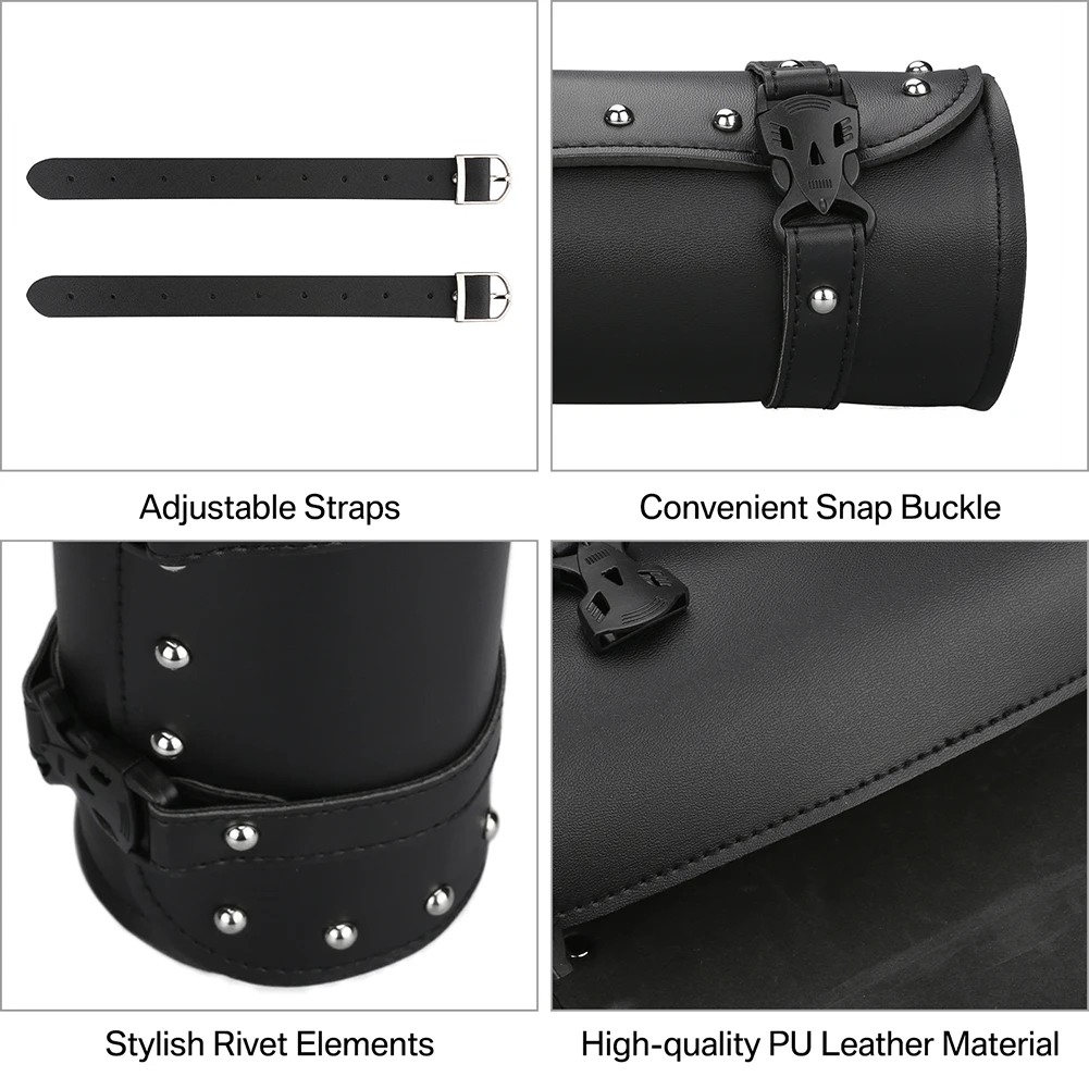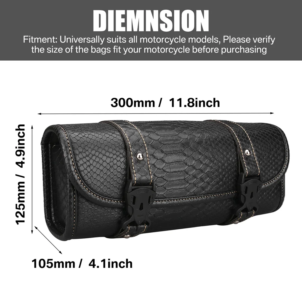 Enhance your motorcycle’s style and functionality with this compact, rugged tool bag measuring 20 cm in length, 10 cm in width, and 10 cm in height. Crafted with a textured faux crocodile leather surface in black, purple, or snake skin patterns, it combines a sleek aesthetic with durable construction that includes a PVC plastic core and soft non-woven fabric interior. Its waterproof design ensures your essentials stay dry, while the two adjustable buckle straps and quick-release sockets offer secure, easy installation on handlebars or other suitable locations. Lightweight at only 0.4 kg, this versatile saddlebag is perfect for storing small tools, mobile devices, or beverages, merging style and practicality seamlessly.