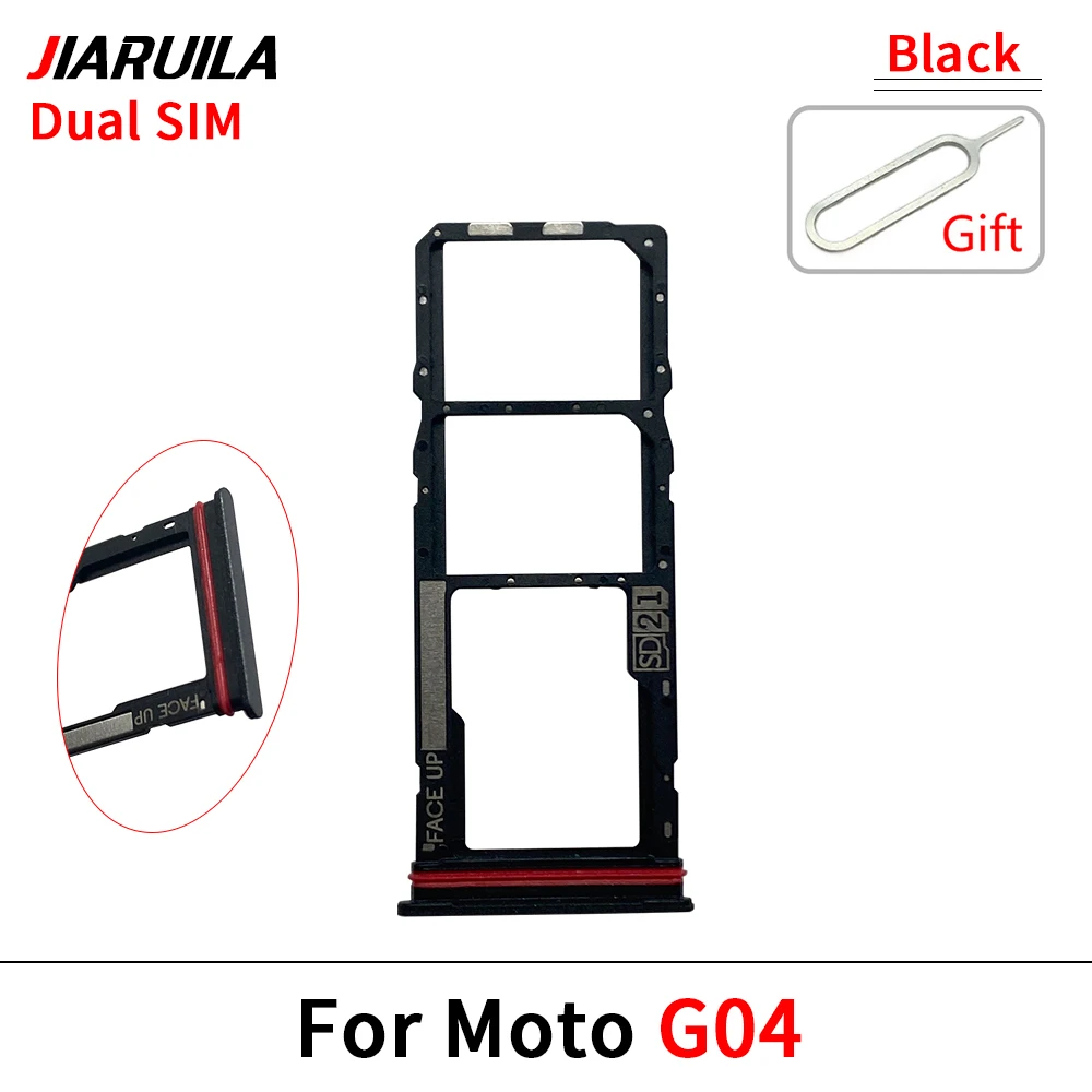 Imagine seamlessly switching your SIM cards with this sleek, stylish SIM chip holder slot adapter designed specifically for Motorola Moto G04 and G24 models. Crafted with precision, it features a sturdy black rectangular frame with a textured surface, ensuring durability and a refined look. The slim, elongated SIM trays come in various colors—metallic silver, black, white, and vibrant hues like purple, green, and pink—allowing you to personalize your device while maintaining a modern aesthetic. The metallic rails and locking tabs ensure your SIM cards stay securely in place, making the process effortless. Accompanied by a matching metallic ejector tool, this set embodies practicality and elegance, elevating your smartphone experience with a trusted replacement part.