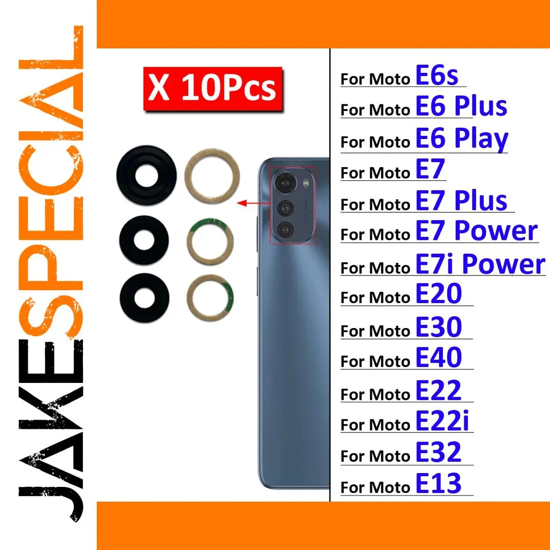 - Includes 10 high-quality glass rear camera lens covers compatible with various Motorola models like E4, E6, E6s, E7, E7i, Plus, Play, Power, E20, E30, E40, E22, E32, E22i, and E13, ensuring broad device coverage.