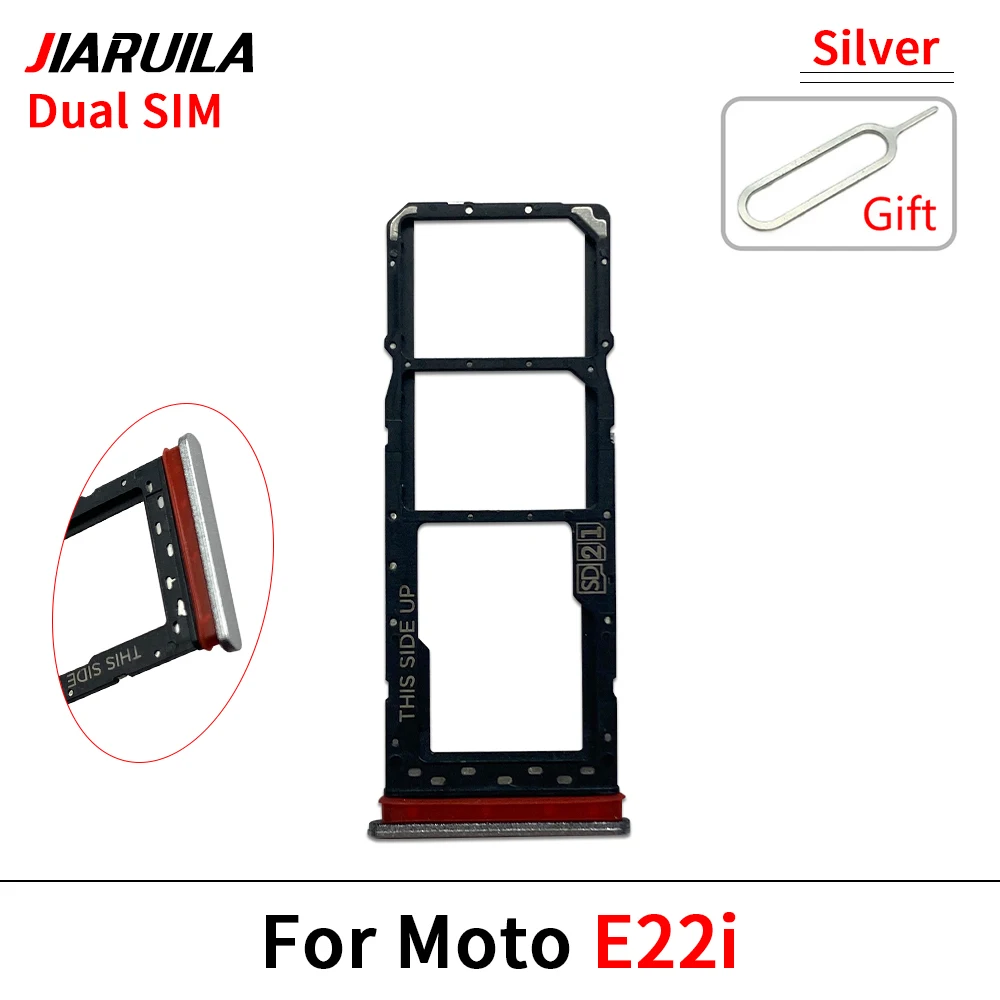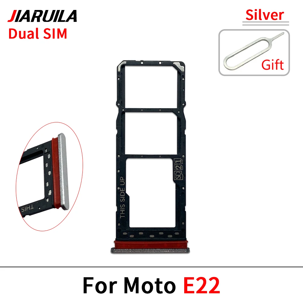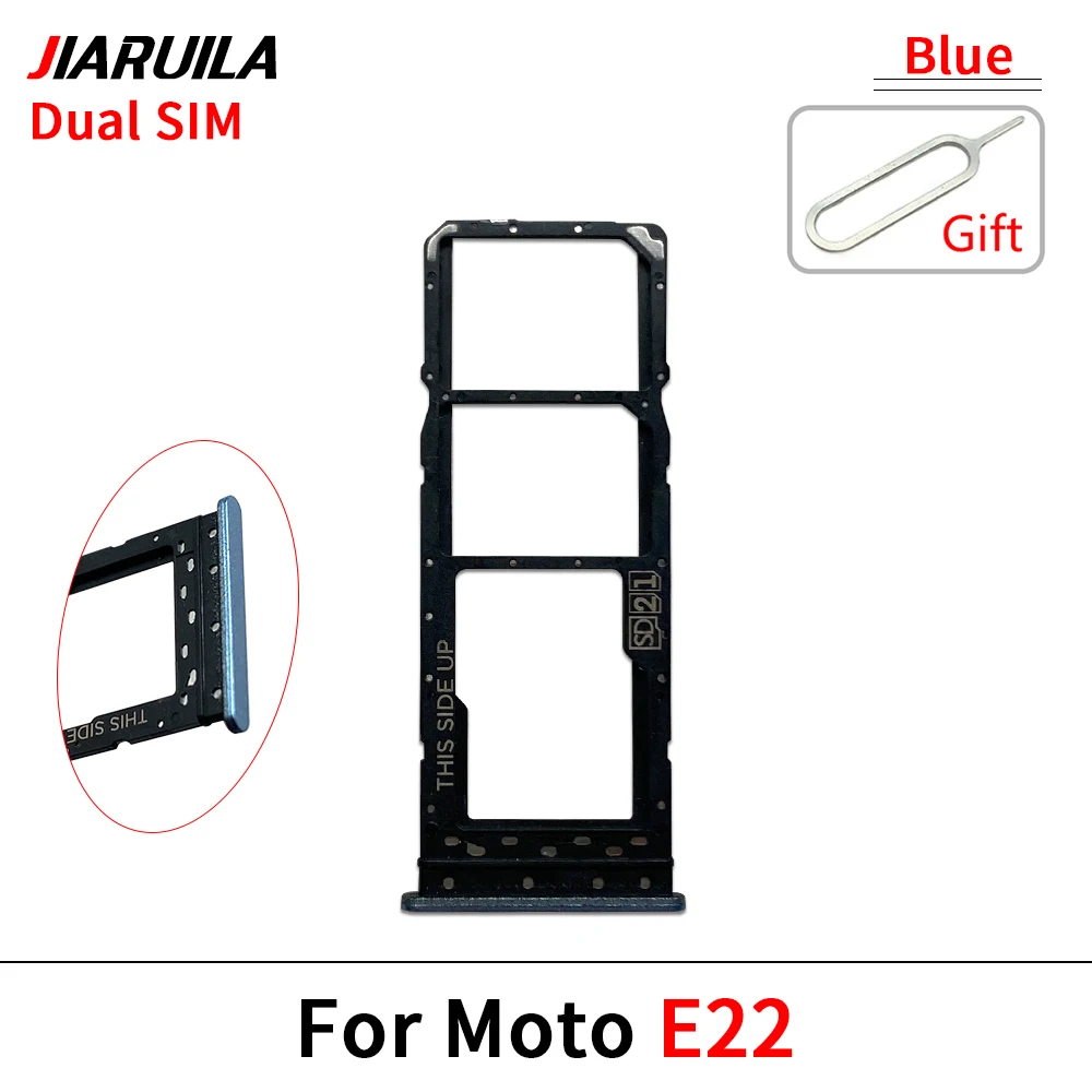 Enhance your Motorola device with this practical set of SIM card tray slot holder adapters. Designed specifically for models E13, E22, E22i, and E32, these adapters ensure a secure, precise fit for your SIM and microSD cards. Crafted from durable plastic, they come in versatile colors including black, white, green, dark blue, grey, silver, and gold, allowing you to match your device perfectly. The sleek, minimalist rectangular frames feature slight notches and tabs along the edges for seamless installation. With “THIS SIDE UP” inscriptions in white for correct positioning, these adapters combine functionality with a clean aesthetic. Streamline your phone's tray and prevent damage with these reliable accessories, making your device more adaptable and user-friendly.