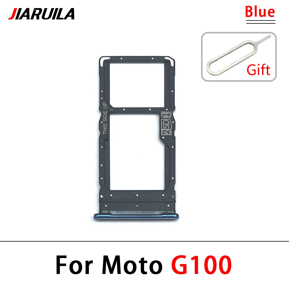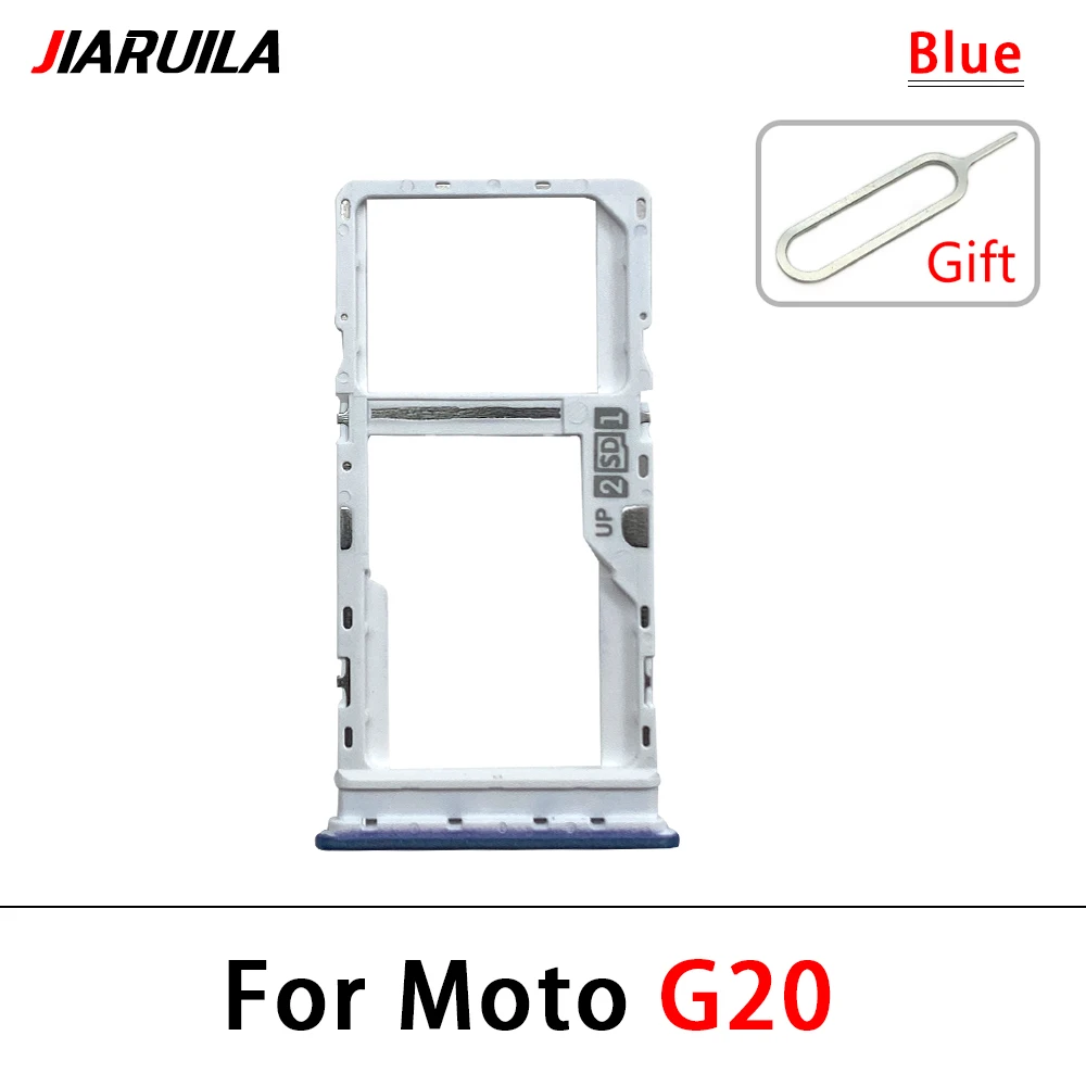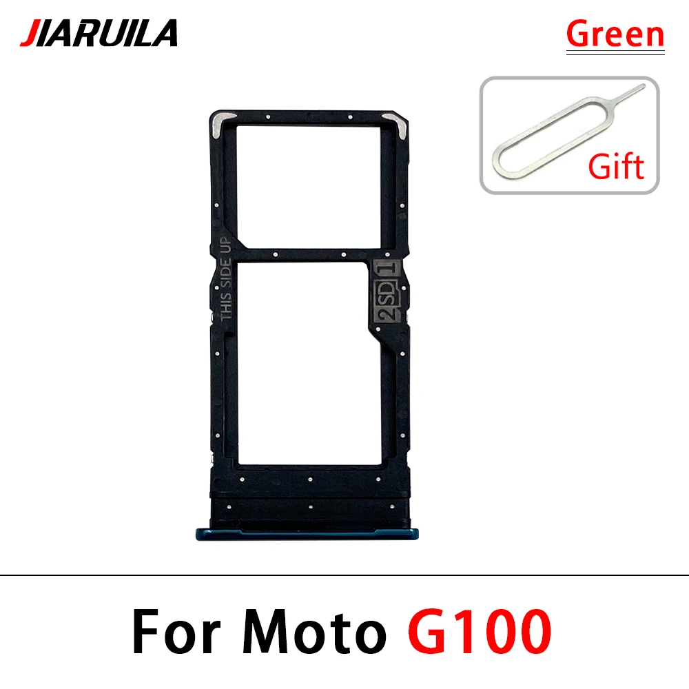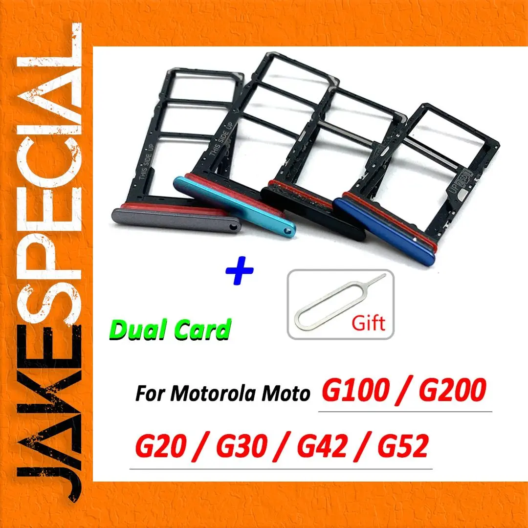 This replacement SIM card tray holder adapter is compatible with Motorola models including Moto G100, G20, G30, G200, G10, G42, and G52. It features a sleek design with various color options such as G20 Blue, G30 Gray, G100 Light Blue, and more. Each tray includes a slot for the SIM card and comes with a pin for easy installation. Individually tested for quality, this essential accessory ensures seamless functionality, allowing you to maintain your device with style and confidence.