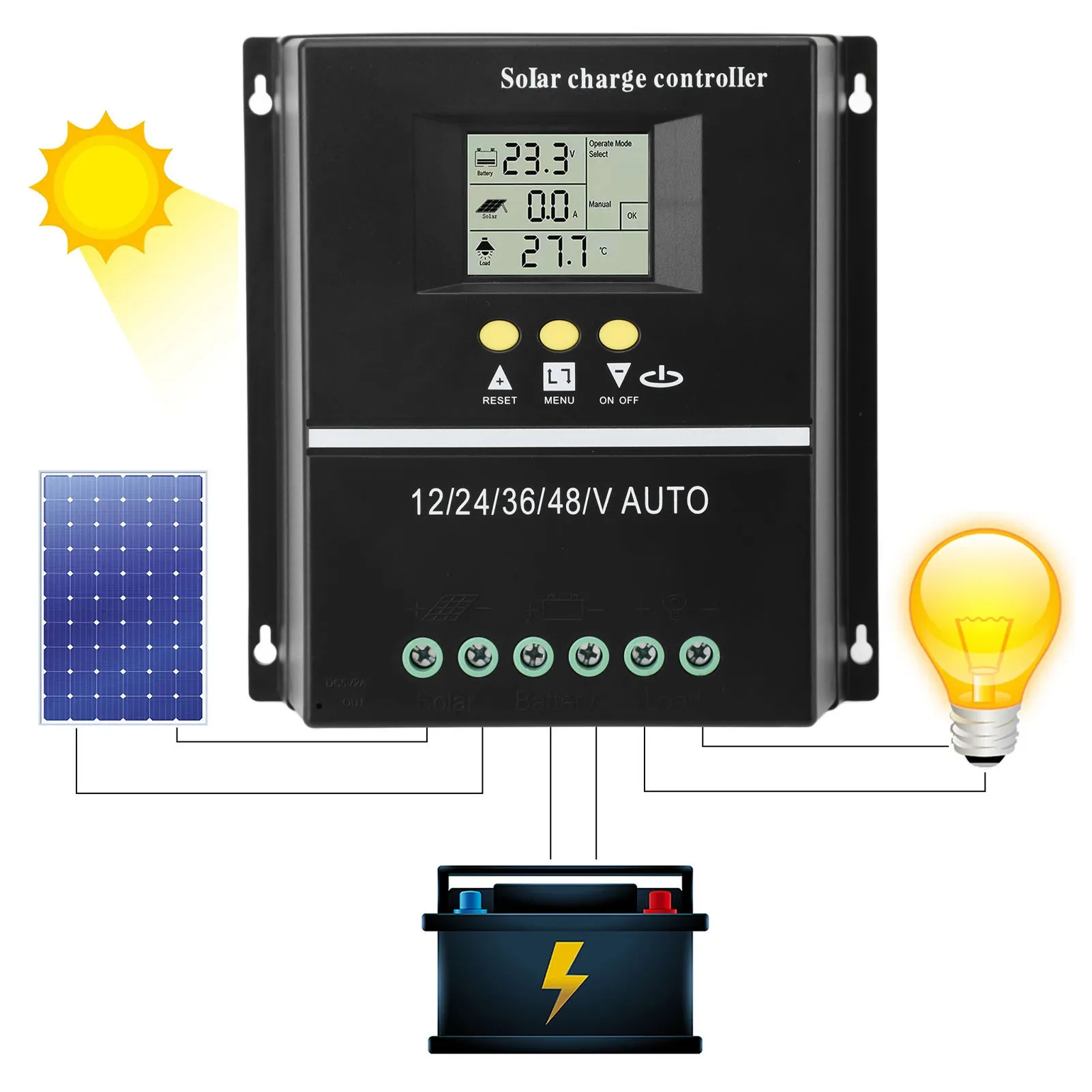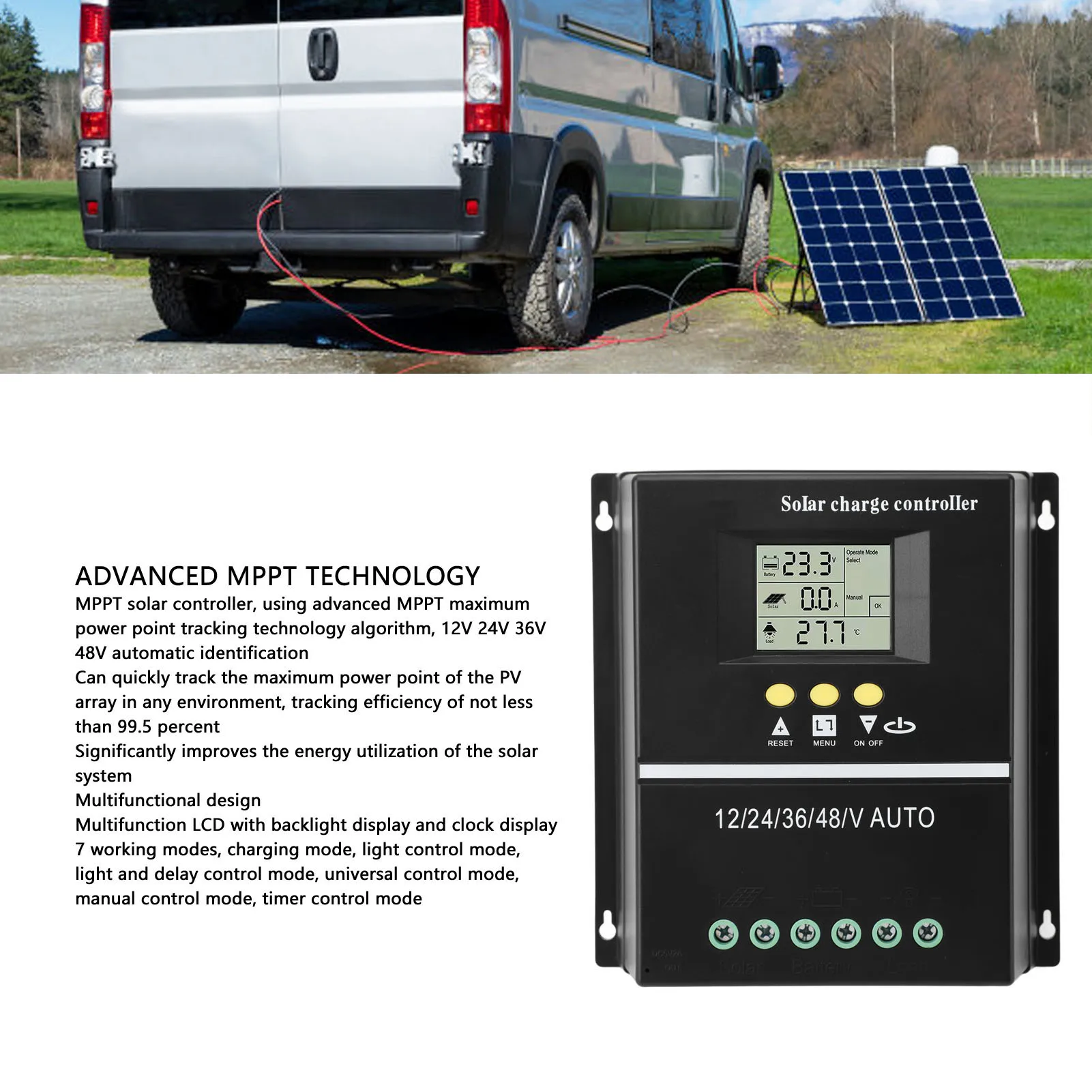 - Supports 12V, 24V, 36V, and 48V systems; input voltage up to 100V PV array, suitable for various solar setups.