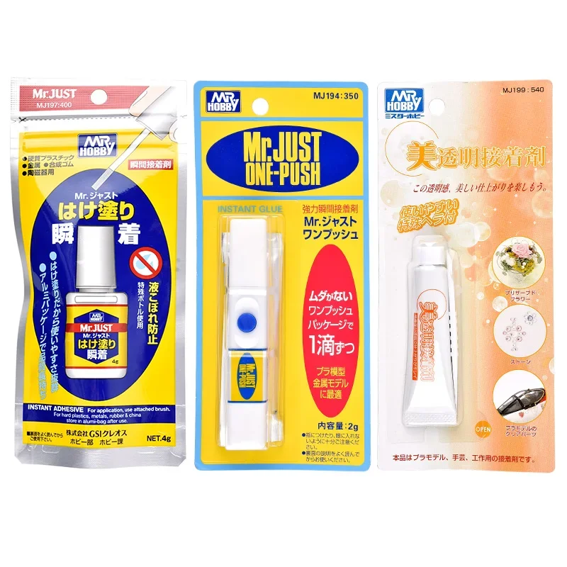 Enhance your military modeling experience with the MR.HOBBY Model Glue Water Patch Softener collection. This set features a variety of transparent cylindrical bottles, each showcasing vibrant adhesives inside, identified by color codes: MC-127, MS-231, MC-129, MS-232, MS-232 1, MC-131, MC-124, MS-231 1, MC-132, and MJ-199. Each bottle is equipped with a color-coded cap—orange, blue, yellow, and green—making it easy to distinguish between specialized formulations for assembling models and softening decals. Designed for amateur enthusiasts, this essential toolset will elevate your craftsmanship and transform your model-building projects into extraordinary displays.