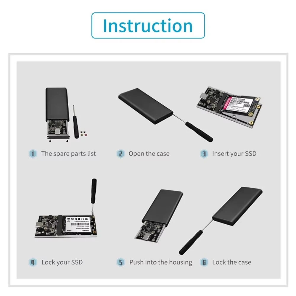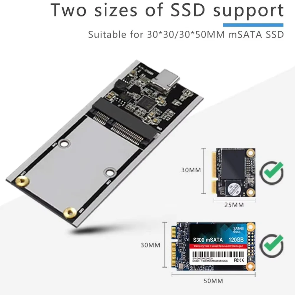 - Features USB 3.1 Gen2 interface for high-speed data transfer up to 10Gbps, though optimized for maximum 6Gbps speed for mSATA drives, ensuring steady and rapid performance.