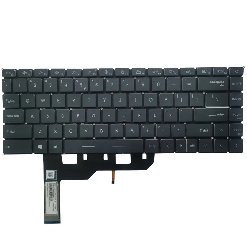 - The standard US QWERTY layout includes dedicated function keys (F1-F12), a spacious enter key, arrow keys, and a full top row with secondary function icons for multimedia control and brightness adjustment.