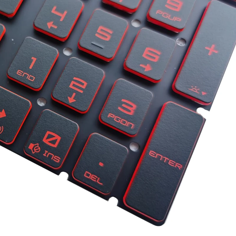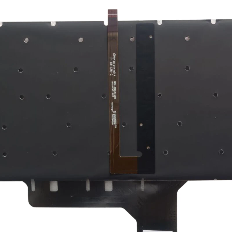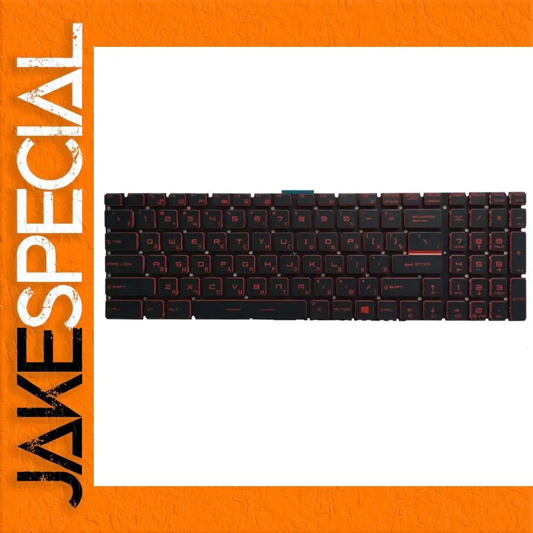 Elevate your gaming and computing experience with this newly designed laptop keyboard compatible with various MSI models, including GV62 8RC, 8RE, GV62VR, GV72 7RD, GV72 7RE, GV72VR, and GL63 8RE, 9SD, 9SE. The keyboard features a sleek black base illuminated by vibrant red backlighting that highlights the key labels, ensuring clarity in low-light environments. With a modern design featuring flat keys in a matte finish, every keystroke feels responsive and satisfying. The bilingual key arrangement includes both Cyrillic and Latin characters, catering perfectly for Russian, Spanish, and Latin language users, making this keyboard a versatile choice for any professional or gaming setup.
