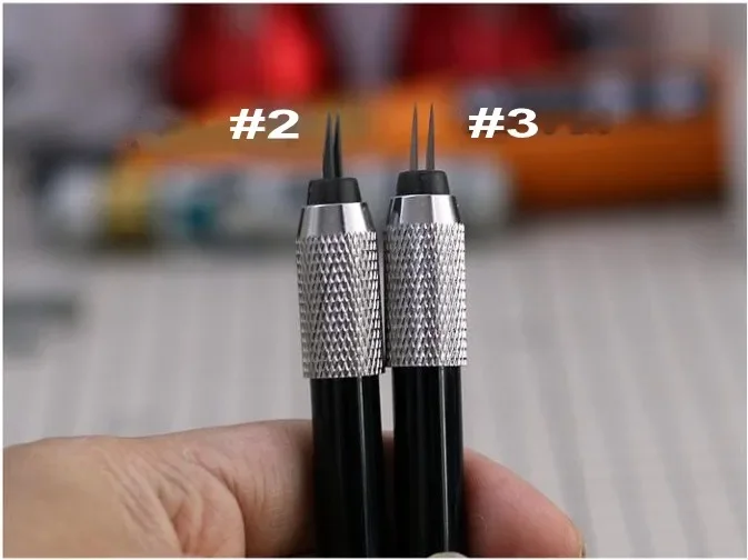 - The handle has a metallic silver finish, featuring a textured diamond pattern for a comfortable, non-slip grip during detailed work. Its sleek design offers both durability and style.