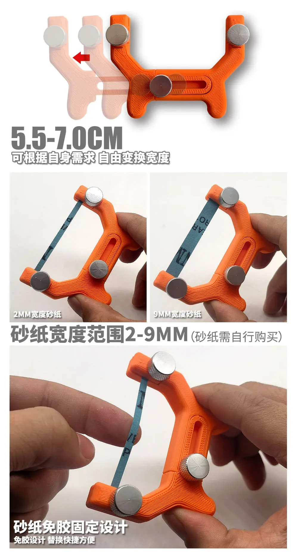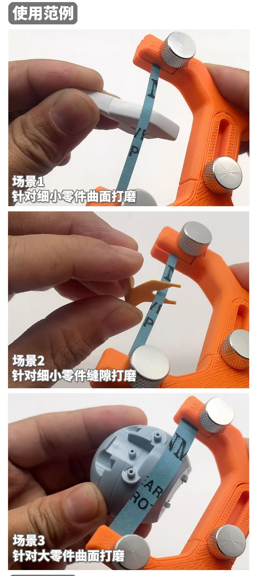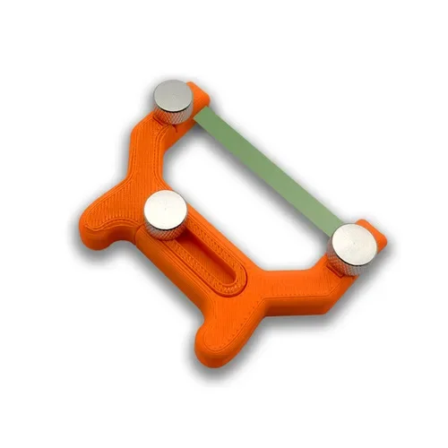 Experience the precision and ease of use with this innovative handheld curved surface grinder designed specifically for model builders and hobbyists. Crafted with a vibrant bright orange plastic body, it showcases a textured, layered finish that hints at advanced 3D printing techniques, offering both durability and visual appeal. Its ergonomic Y-shaped design comfortably fits in your hand, allowing for steady control during detailed sanding and polishing tasks. The silver-colored metal knobs on each side add a sleek industrial touch, securing the green sanding belt stretched across the top, which is perfect for fine, curved surface work. Now, you can achieve professional results on your military or scale models, adding intricate details seamlessly and efficiently.