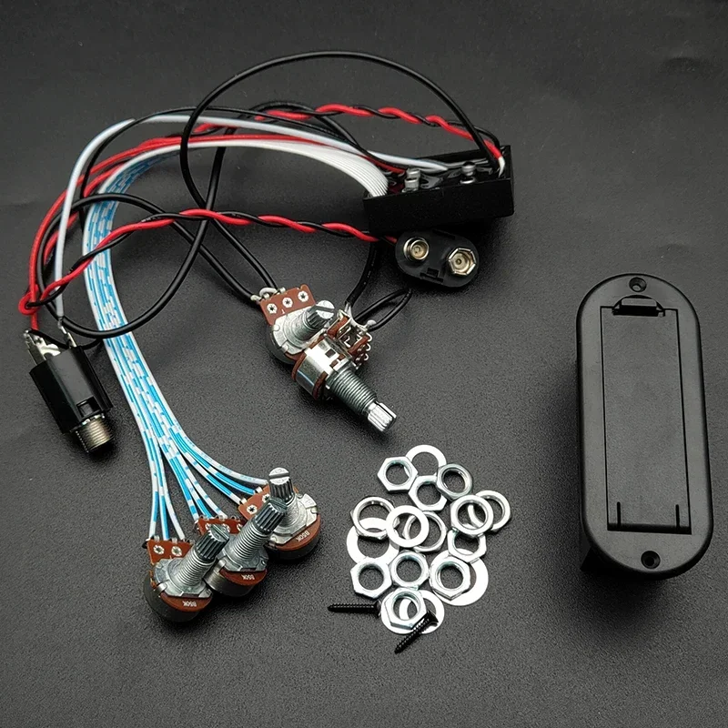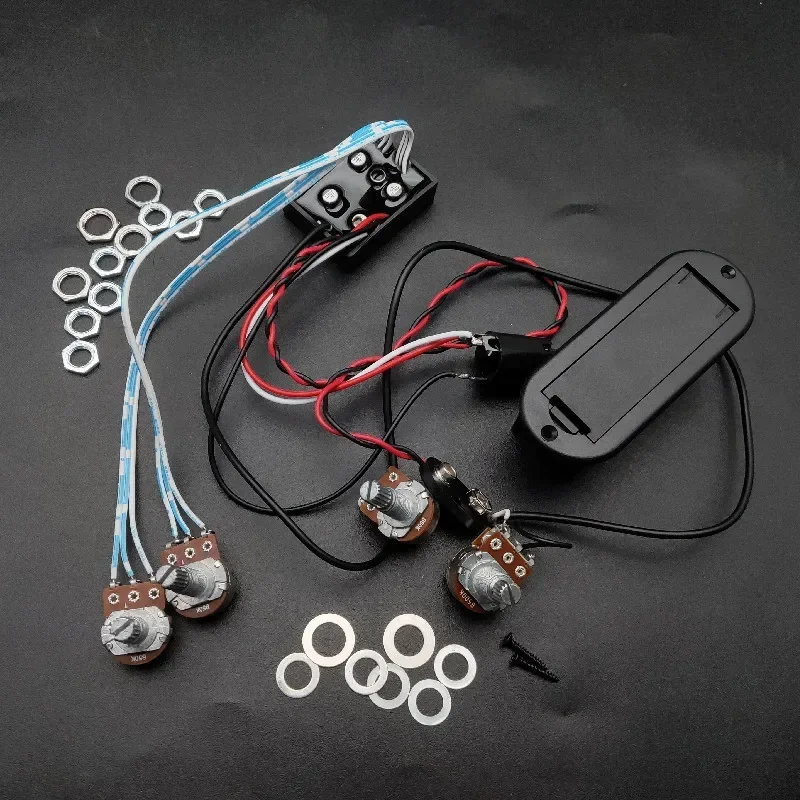 The 3 Band or 2 Band Active Bass Circuit EQ Equalizer Preamp, model MU2160, is expertly crafted for electric bass, ensuring you achieve the best sound quality. Its dual potentiometers provide improved tone control, allowing you to fine-tune your bass experience precisely. Designed to minimize noise and amplify sound effectively, this preamp is a perfect match for any bass guitar lover. The kit comes with all the necessary accessories for installation, so you can quickly upgrade your setup and enhance your musical journey. Visualize yourself playing with this powerful preamp, enjoying rich, vibrant tones that make your bass stand out.