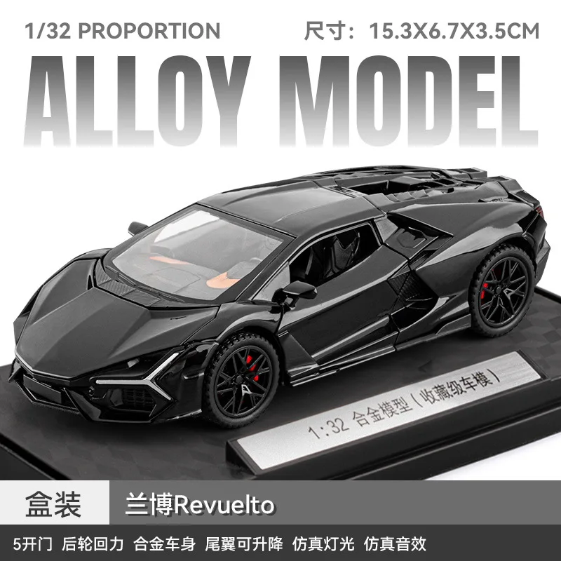 - This 1:32 scale alloy sports car features meticulous details like angular headlights and side air intakes for realistic aesthetic appeal.