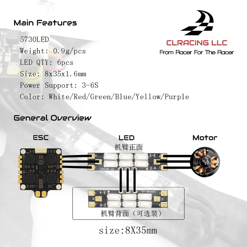 With these versatile LED light boards, you will be able to personalize your RC multicopter easily and reliably. Perfect for race enthusiasts and hobbyists, they blend technical precision with aesthetic appeal. Invest in quality components from CLRACING to ensure your drone stands out in the sky, whether during casual flight or competitive racing. Enjoy the confidence that comes with knowing you have reliable, durable, and visually attractive LED boards supporting your flying adventures. Make your RC drone truly yours by adding these eye-catching, high-performance LED modules today!