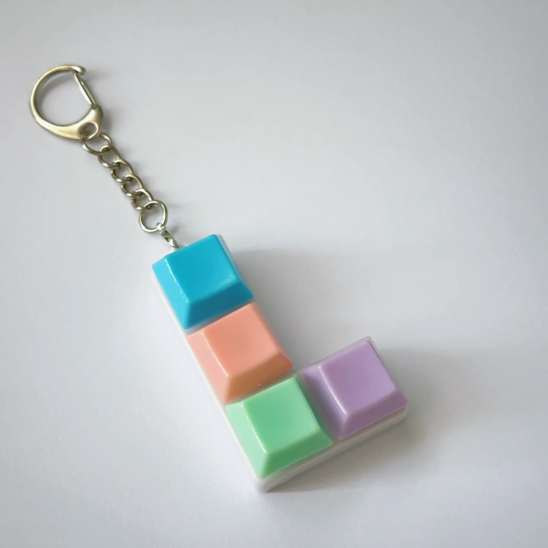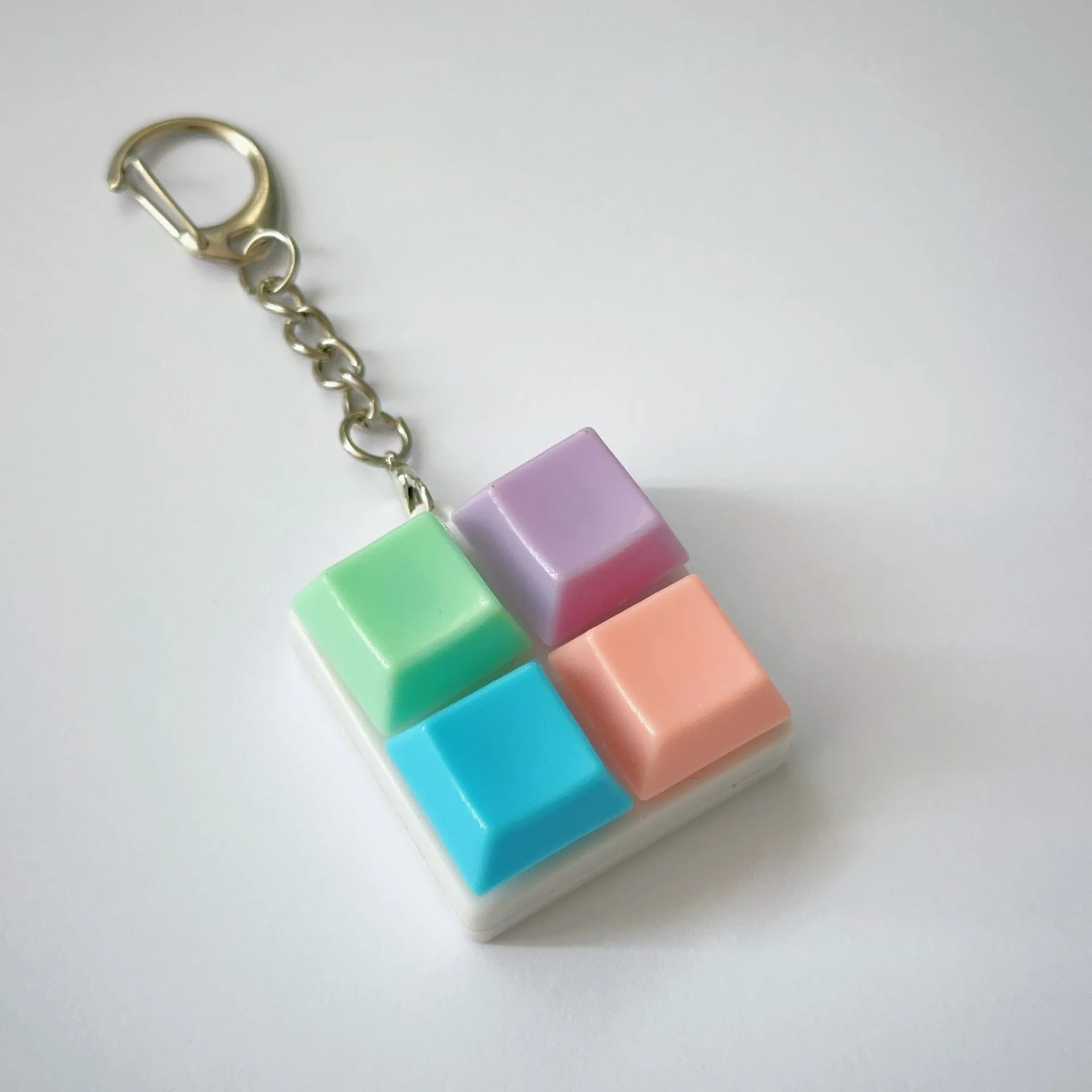 Enhance your style with this trendy keychain toy featuring a compact square-shaped pattern of soft pastel-colored plastic blocks in pink, purple, mint green, and blue, mounted on a transparent base. The sleek silver lobster clasp and key ring, crafted from zinc alloy with an imitation rhodium finish, add a polished touch to the playful, modern design. Suitable for casual and sporty looks, this unisex accessory offers versatile themes like music, sports, anime, and transportation, making it a perfect gift or decorative item. Measuring 1, 2, 3, 4, or 5 units, it combines vibrant colors and contemporary style for daily use and personal expression.