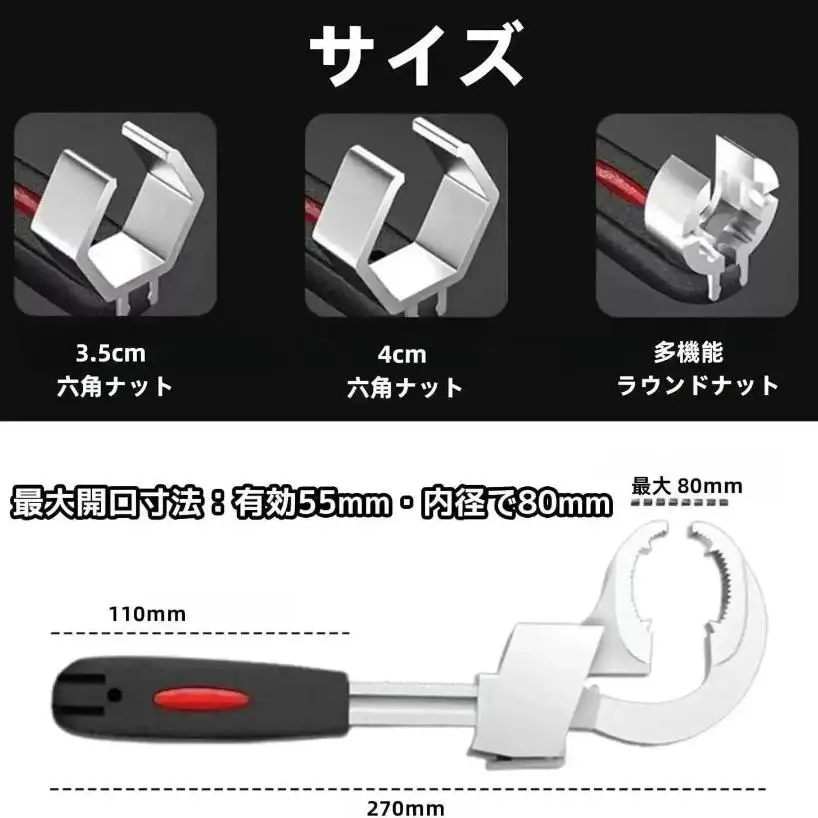 - Adjustable opening up to 80mm, allowing compatibility with a wide range of nuts and fittings for versatile plumbing repairs and installations.