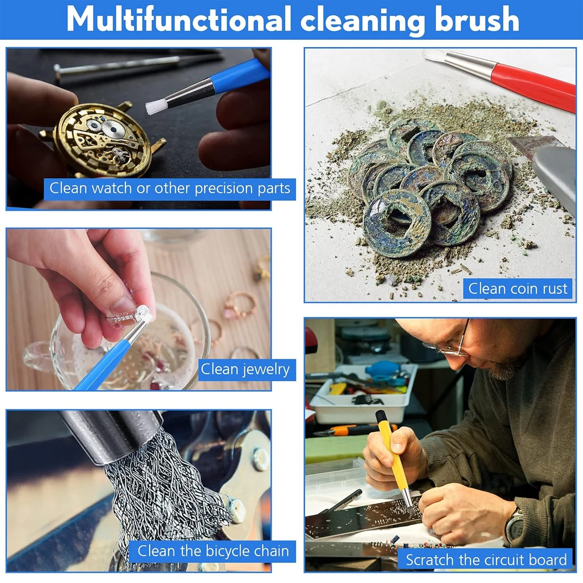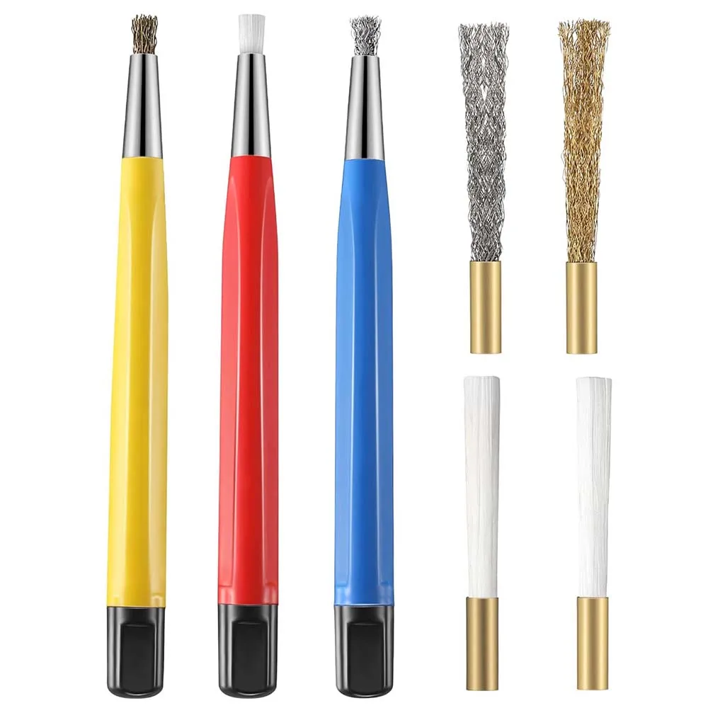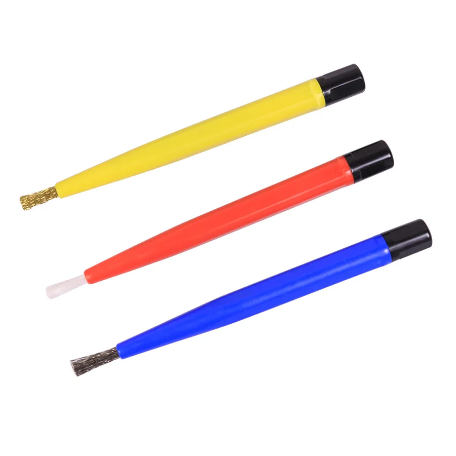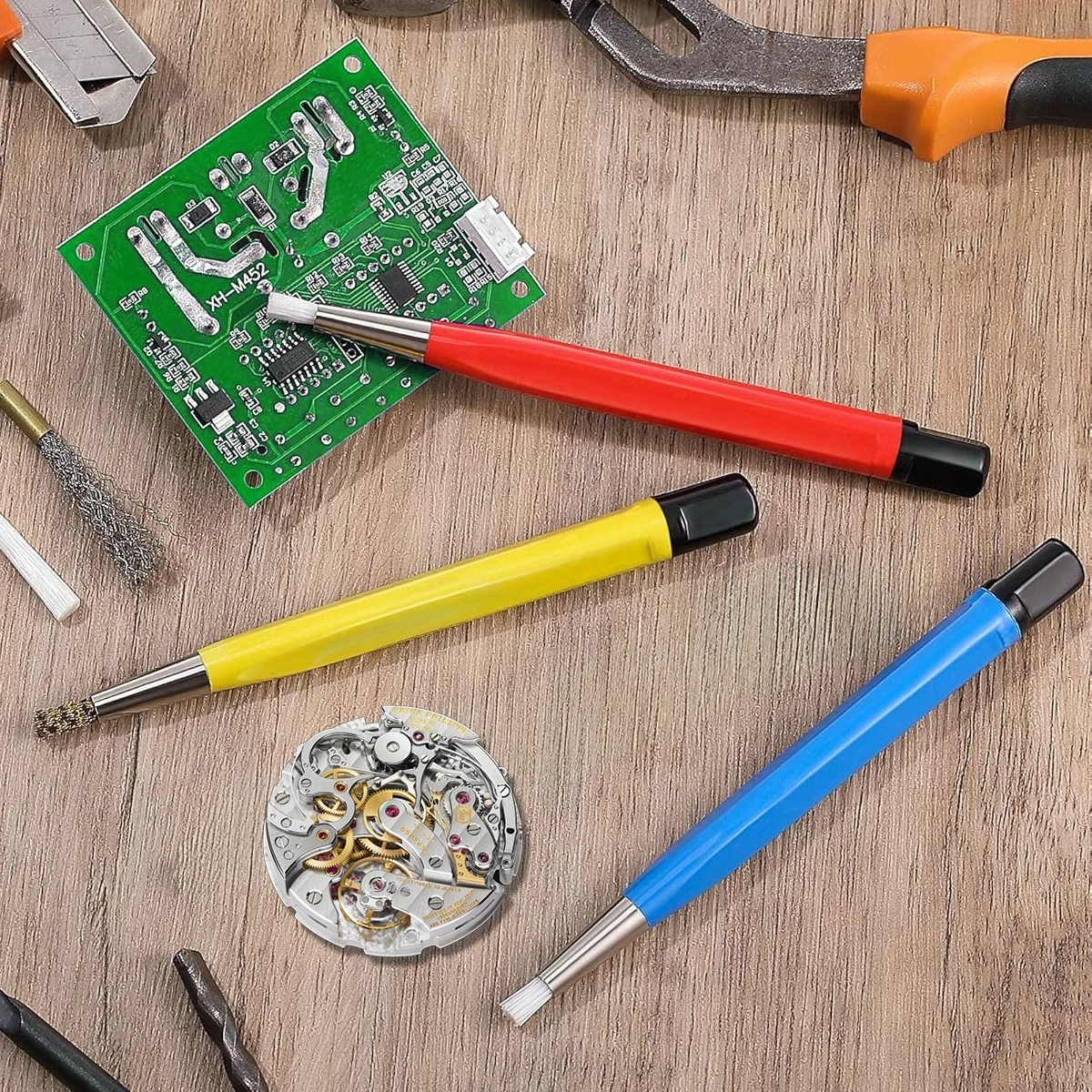 This versatile brush pen features a durable composite handle with a fiberglass tip and metal ferrules, designed for precise cleaning, rust removal, and polishing. Equipped with a twist cap to adjust the length and firmness of the wire bristles, it is ideal for working in tight spaces on electronics, watches, jewelry, automotive parts, and circuit boards. Available in vibrant colors such as red, yellow, and miscellaneous shades, each package includes 1 or 3 brushes with dimension variations of ±1-3cm. Its robust construction ensures long-lasting performance for professional cleaning, maintenance, and detail work across various applications.