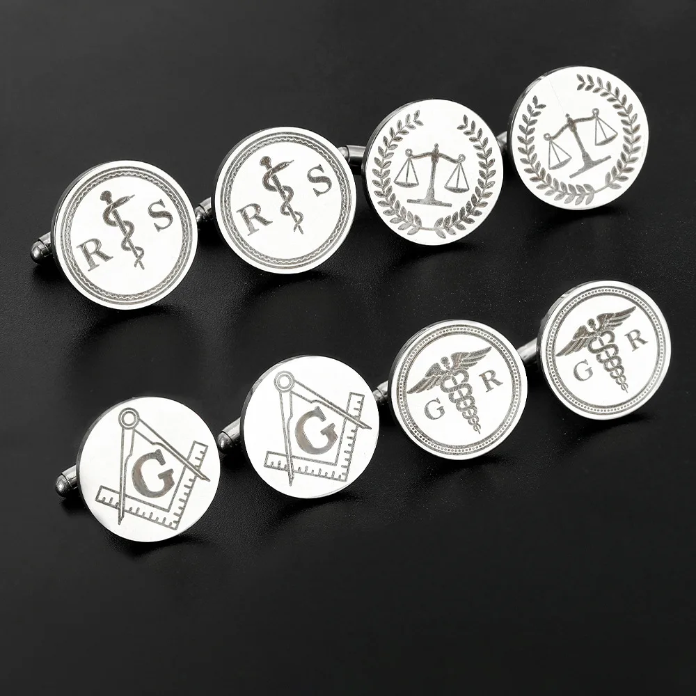 These Multi Professional Symbolic Cufflinks are crafted from high-quality alloy, featuring a retro design that highlights classic symbols of Freemasonry, including a compass and square with an engraved “G” at the center. Suitable for unisex wear, these cufflinks complement a variety of styles from Viking to military, punk, and elegant looks. Ideal for jackets, backpacks, hats, or DIY clothing projects, they come in an array of colors including black, green, white, and red. Each cufflink offers a shiny, reflective finish, with dimensions as shown in the provided figure, allowing a size deviation of 1-3mm.