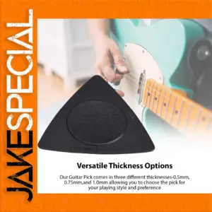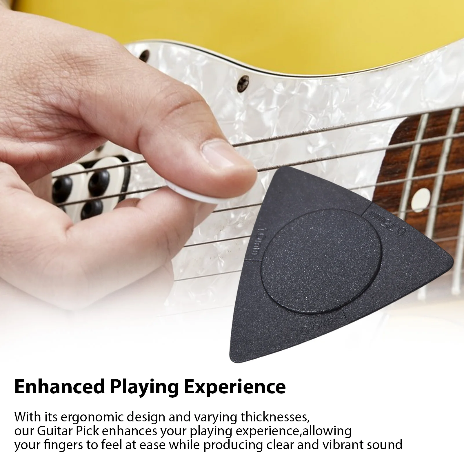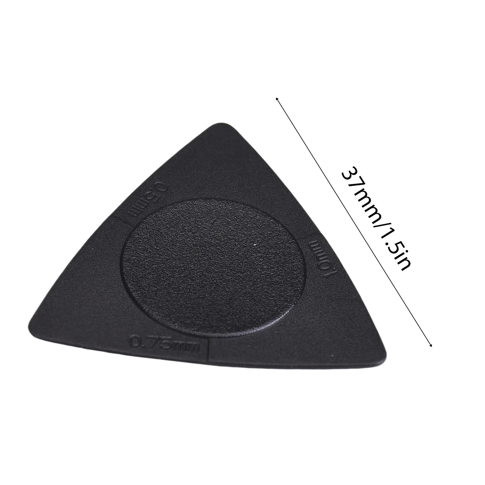 Experience the perfect blend of style, comfort, and versatility with this set of black guitar picks. Crafted from durable ABS material, each pick measures 37mm by 37mm (1.5″ by 1.5″) and features a sleek, black finish that is both modern and practical. The set includes three different thicknesses—0.5mm, 0.75mm, and 1.0mm—allowing you to tailor your playing experience to your preferences. The smooth surface and rounded edges provide a comfortable grip, making extended sessions and performances easier. Lightweight and portable, these picks are ideal for musicians on the go. Whether you're practicing or performing, this versatile set ensures clear, vibrant sound and effortless control during every note you play.