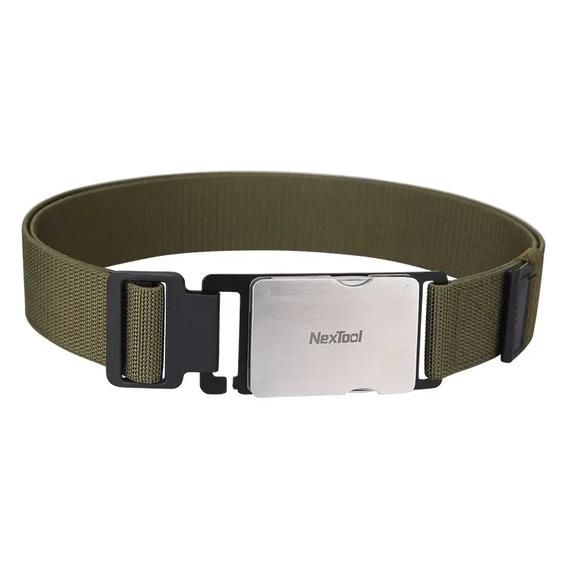 Experience unmatched convenience with this sleek, multi-functional outdoor waist belt buckle repair tool from NexTool. Crafted from durable metal, it combines robust construction with a modern design featuring a polished metallic silver finish on the buckle. The engraved NexTool branding adds a subtle touch of sophistication. The set includes two textured nylon straps in black and olive green, reinforced at the edges for added resilience during outdoor activities. Embedded directly into the buckle are essential tools: a precise flat-head screwdriver, retractable scissors with black handles, a textured metal file for smoothing or sharpening, a curved bottle opener, and a slim pin remover ideal for SIM card removal. Designed especially for bicycle maintenance, this multi-tool offers practicality and style, making it an essential companion for any outdoor enthusiast.