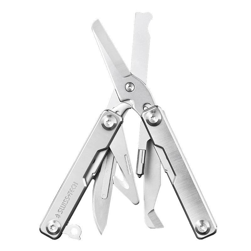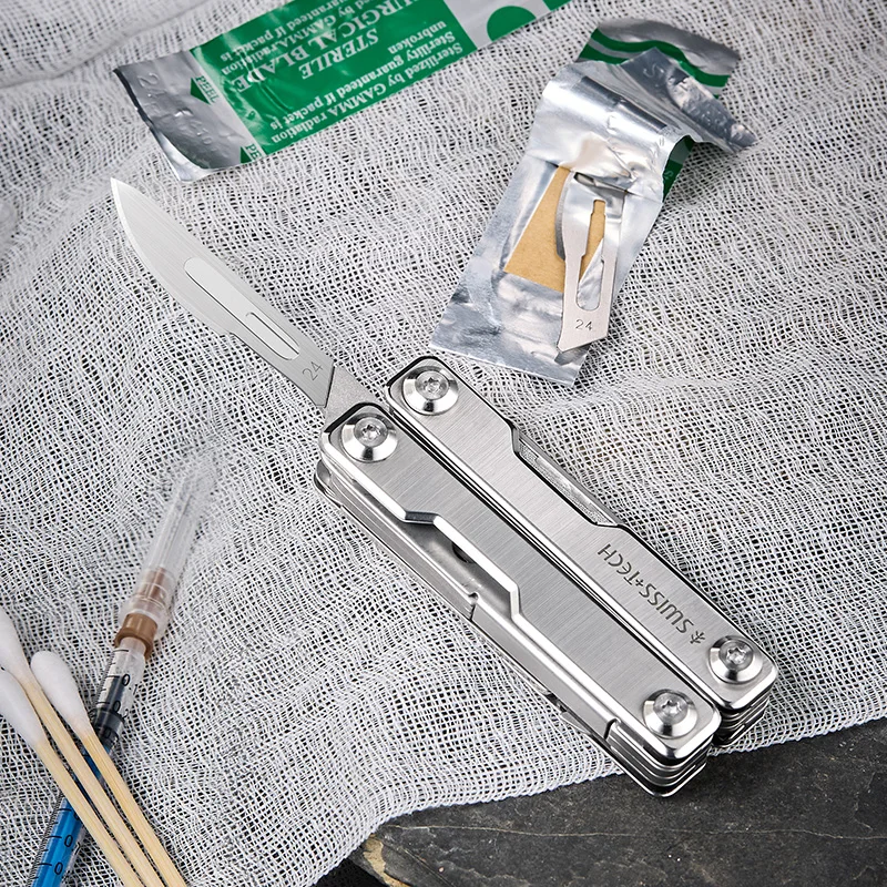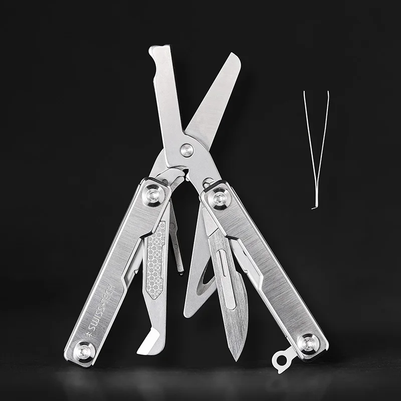 Experience ultimate readiness with this multi-functional outdoor survival emergency tool, crafted from durable stainless steel. Featuring a sleek silver finish, it includes versatile components such as scissors, knives, pliers, and woodworking tools, all designed for household and outdoor use. The compact, foldable design with a textured grip ensures easy handling while the bag-style snap-on case provides portability and convenience. Perfect for adventurers and DIY enthusiasts alike, this rugged tool set combines practicality and durability to handle any emergency or task, helping you feel prepared and confident wherever your outdoor adventures take you.