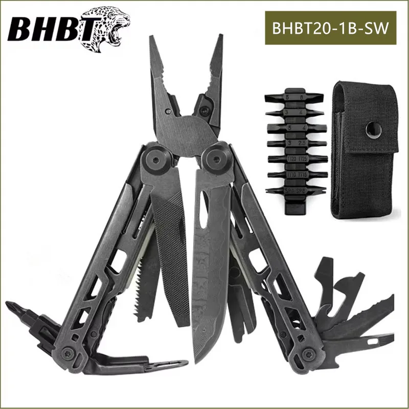 Imagine owning a versatile, high-quality tool that seamlessly combines durability, precision, and aesthetic appeal. The this BHBT 19-in-1 Multi-Tool Pliers is expertly crafted from upgraded 3CR10 stainless steel, ensuring rust resistance and long-lasting performance. Featuring a sleek, gunmetal-colored finish with a textured handle for a secure grip, this multi-tool is perfect for outdoor adventures, camping, survival, and maintenance tasks. Its Damascus blade showcases intricate patterns, highlighting craftsmanship and hardness for effortless cutting. The inclusion of fluorescent blades enhances usability in low-light conditions. With its foldable design and compact case, this set provides easy storage and accessibility for any situation, elevating your toolkit to professional standards.