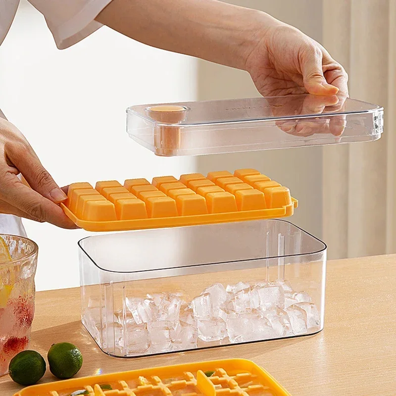 Experience the convenience of this high-quality ice cube mold, designed to seamlessly blend practicality with modern aesthetics. Crafted from durable, food-grade polypropylene with low-temperature resistance, it is perfect for daily use. Its sleek, rectangular shape features a transparent body that vividly displays 28 uniformly shaped, clear ice cubes, adding a crisp touch to your drinks. Available in vibrant white, green, purple, and orange, you can personalize your kitchen while enjoying easy handling. The press mechanism allows for effortless demoulding, making ice production quick and mess-free. Includes a handy spatula for added convenience, ensuring you enjoy perfectly shaped ice with minimal effort. Elevate your beverage experience effortlessly with this stylish, efficient ice mold.