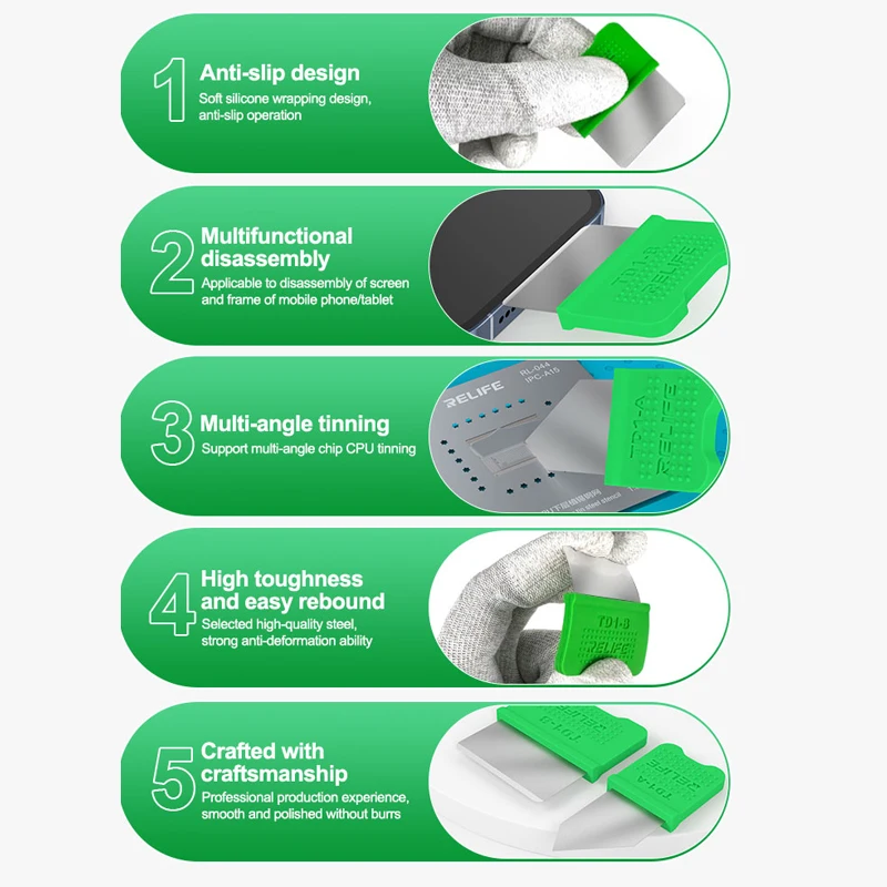 Experience professional-grade precision with this durable, multifunctional dismantling tool designed for LCD screen repair and device disassembly. Crafted from high-quality steel with a sleek, metallic finish, it combines robustness with a modern, utilitarian aesthetic. The soft silicone wrapping not only provides an anti-slip grip but also enhances control and comfort during intricate repairs. Measuring approximately 90mm by 120mm, this versatile tool supports multi-angle disassembly, tinning of chips, and CPU handling, making it an essential accessory for both DIY enthusiasts and professional technicians. Its two models, TD1-A and TD1-B, feature different blade shapes for various maintenance techniques, all packaged conveniently for easy storage and transport. Invest in this reliable tool to elevate your repair experience.