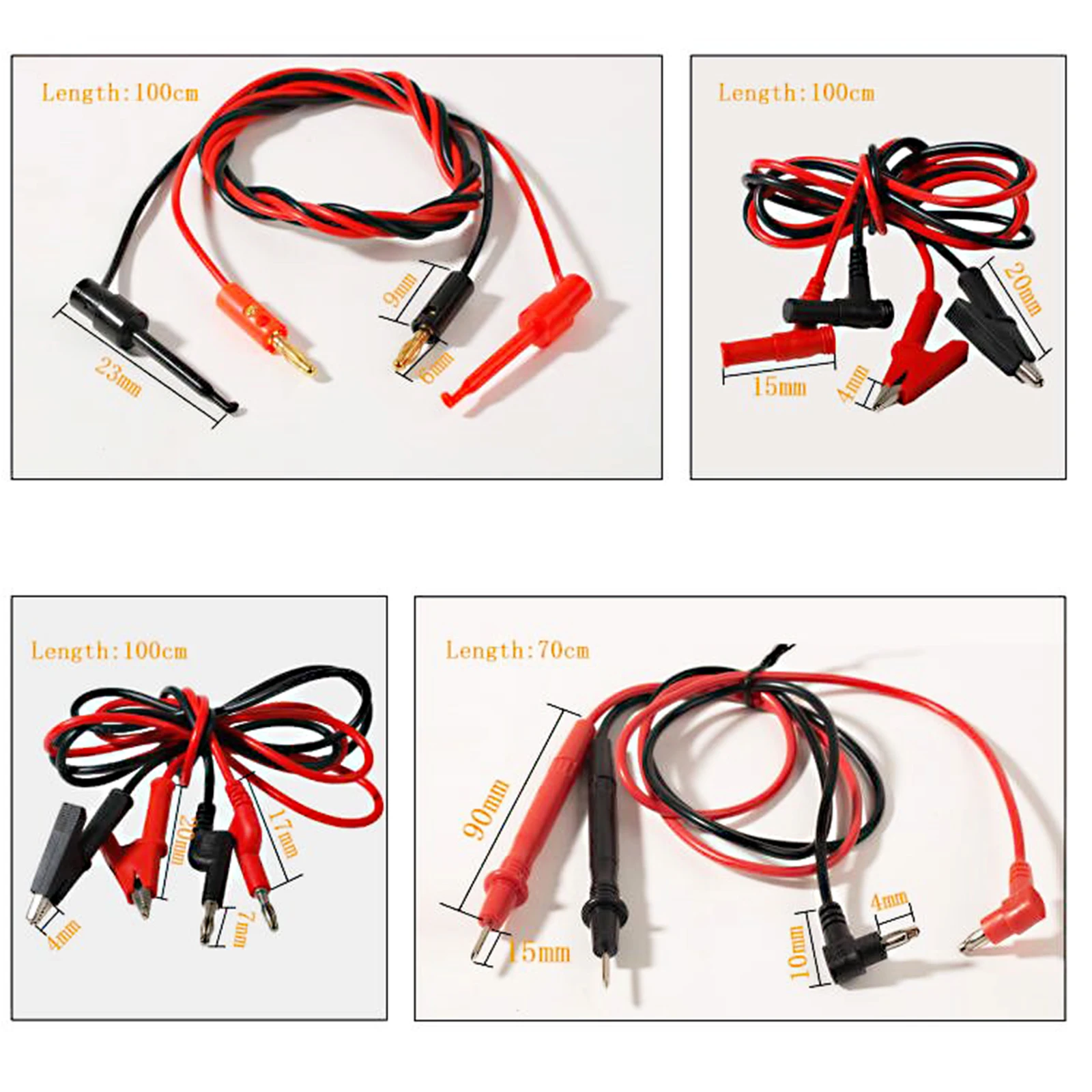 Imagine having the perfect tool at your fingertips, ready to tackle any electrical testing task with confidence. This comprehensive set of multimeter test leads combines durability, flexibility, and precision, allowing you to work comfortably across different environments—be it industrial, automotive, or home electronics. Crafted from high-quality silicone with double insulation and 100% high-purity copper wire, the leads ensure safety, low resistance, and minimal signal loss. With a variety of configurations, including banana plugs, alligator clips, hooks, and needle tips, this set offers unmatched versatility. The bold red and black colors not only add a professional aesthetic but also help prevent connection errors, making your testing accurate and efficient.