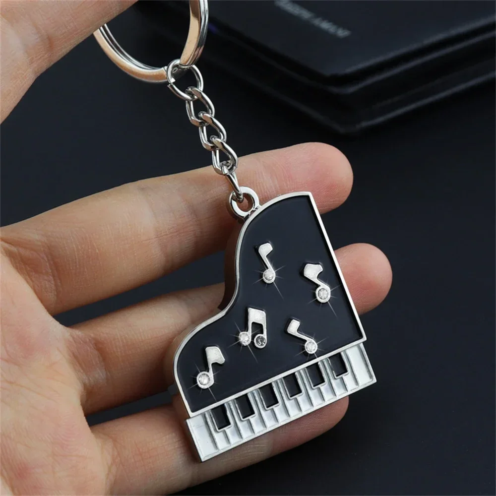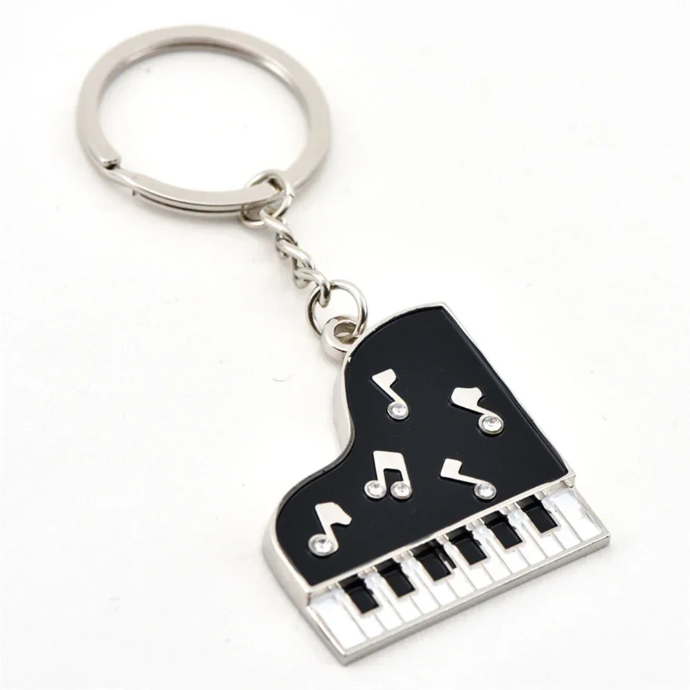 Elevate your style with this fashionable punk-inspired piano key-shaped keychain crafted from zinc alloy, featuring a polished metal finish in colors like gold, silver, ivory, and black zinc plated. Approximately the size shown in images, it showcases a creative design with a metal musical note and detailed white and black keys, making it a versatile accessory for keys, bags, or jewelry. Perfect as a gift for music lovers or as a distinctive everyday fashion statement, this brand-new, lightweight piece adds a touch of modern musical flair to any ensemble, blending functionality with eye-catching style.