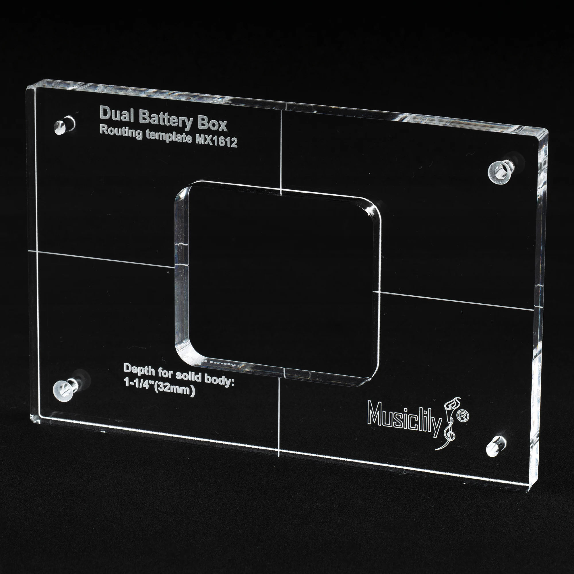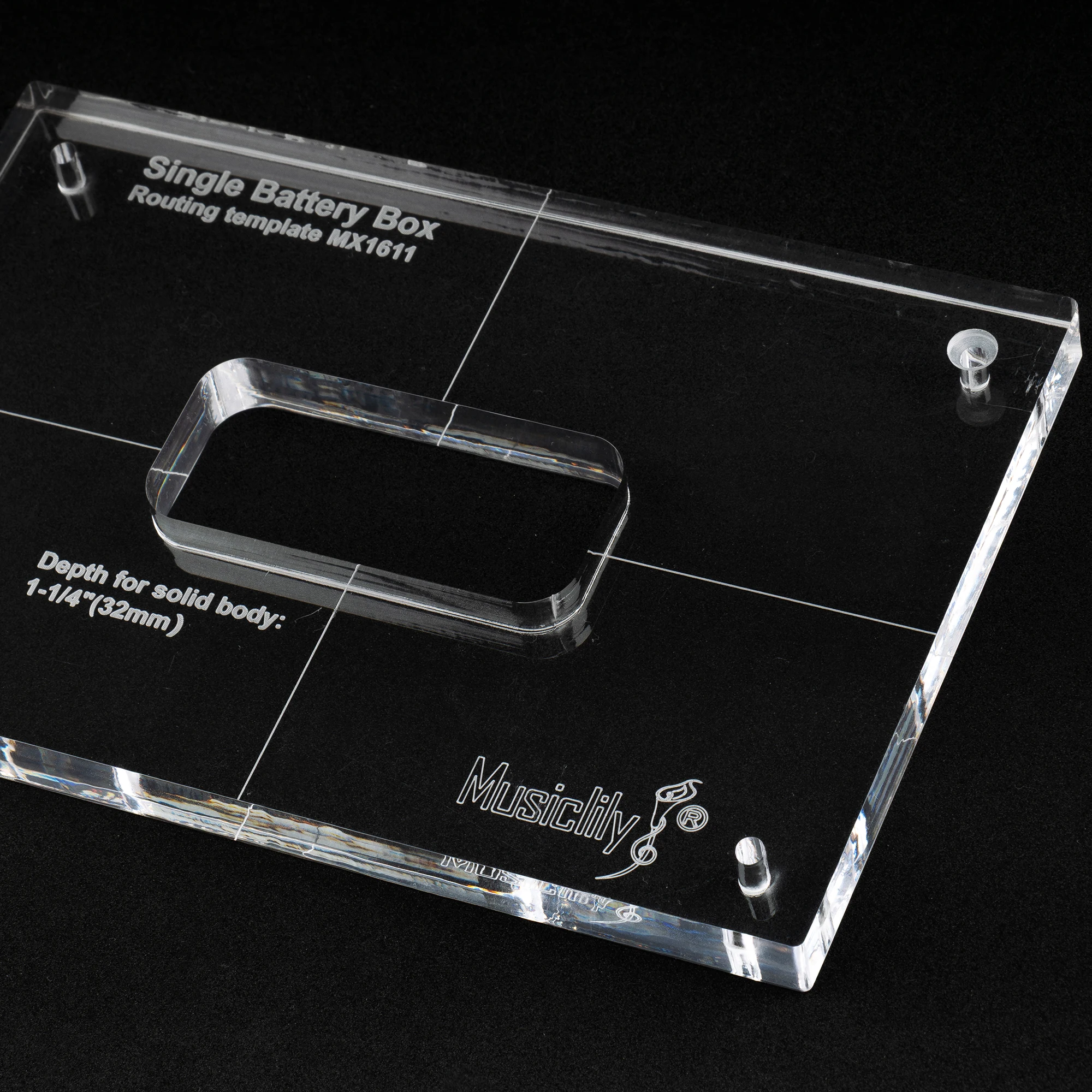 Experience precise routing with this versatile acrylic template designed by Musiclily. Its clear, durable material allows full visibility of your guitar body, ensuring accurate placement every time. With a sleek, minimalist rectangular shape, it features laser-etched centerlines and depth measurements for professional results. Available in single and dual cavity versions, this template simplifies the process of creating cavities for battery boxes, all cut with high-precision CNC technology for perfect size and thickness. Its smooth laser-cut edges facilitate easy contact with router bearings, making your work clean and efficient. Countersunk holes provide secure anchoring with screws during routing. Enhance your guitar build with confidence using this reliable, technical, and modern tool.