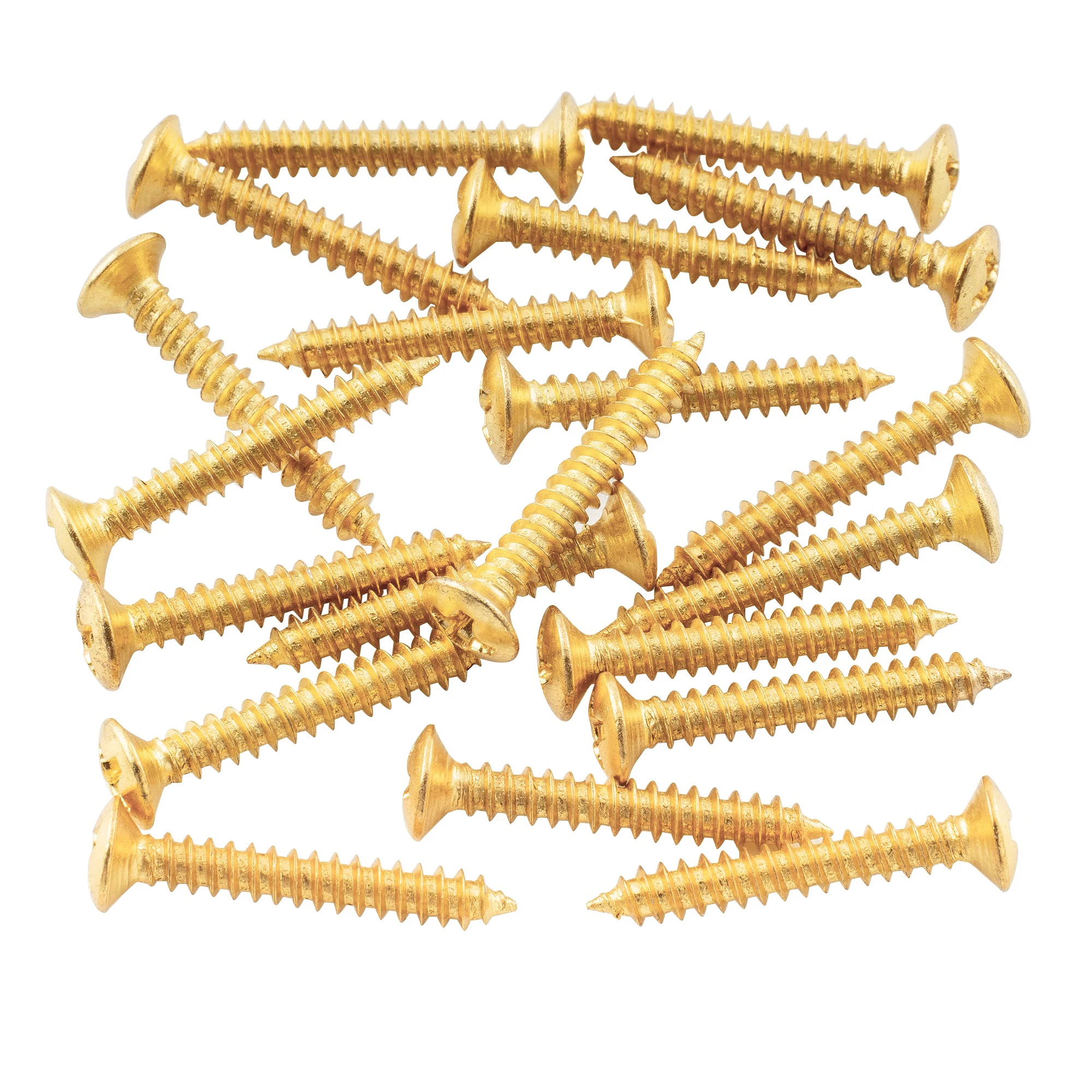 Upgrade your electric guitar with this set of 20 high-quality countersunk mounting screws crafted from durable metal alloy. Each screw measures 22mm in length and 3mm in diameter, providing a secure fit for your guitar’s bridge assembly. Available in sleek black, polished chrome, and elegant gold finishes, these screws feature flat, countersunk heads with a smoothly rounded top for a streamlined look that sits flush with the guitar’s surface. Designed for precise threading and corrosion resistance, they ensure durability and reliable performance during your performances. Perfect for professional repairs or upgrades, these screws will seamlessly blend style and function in your guitar.