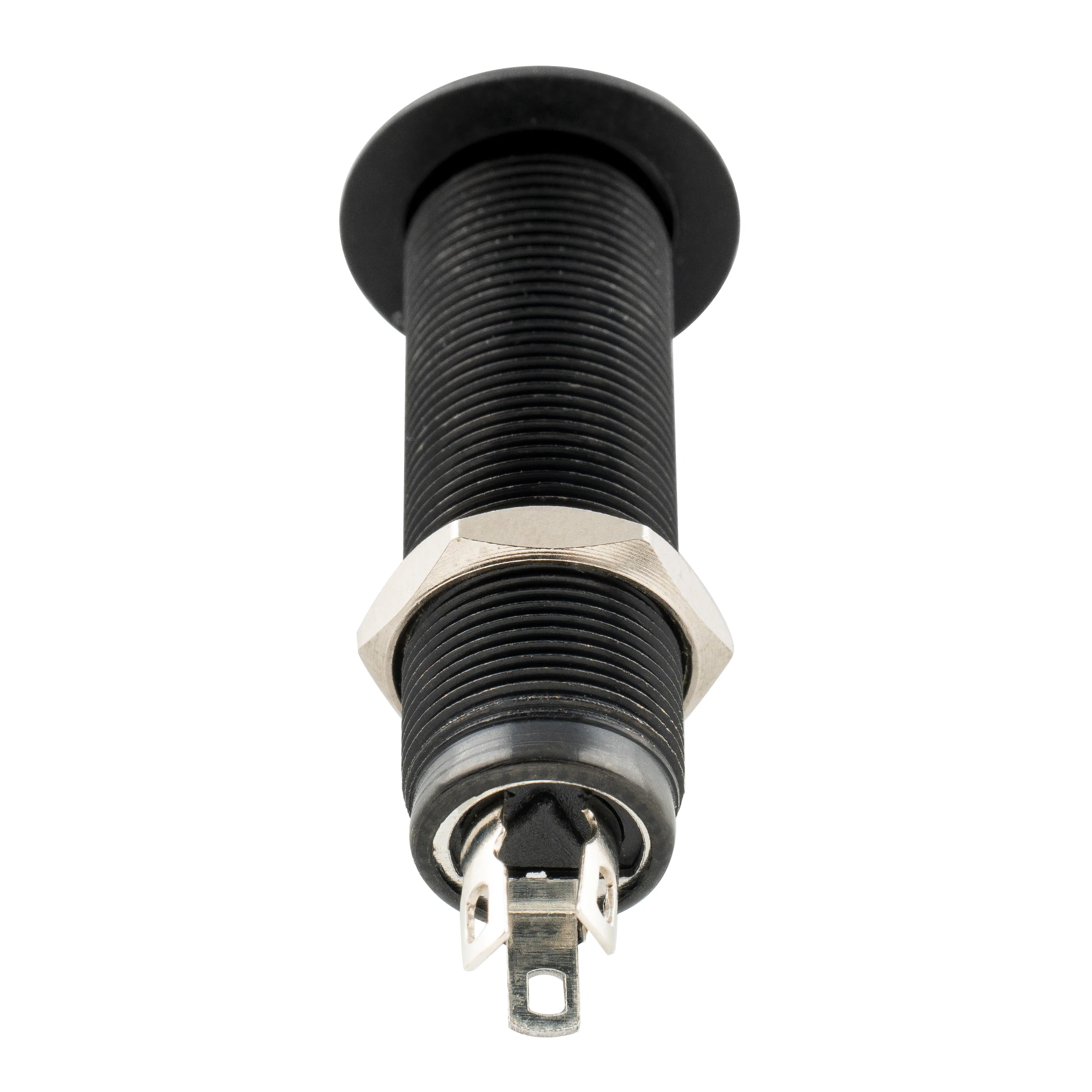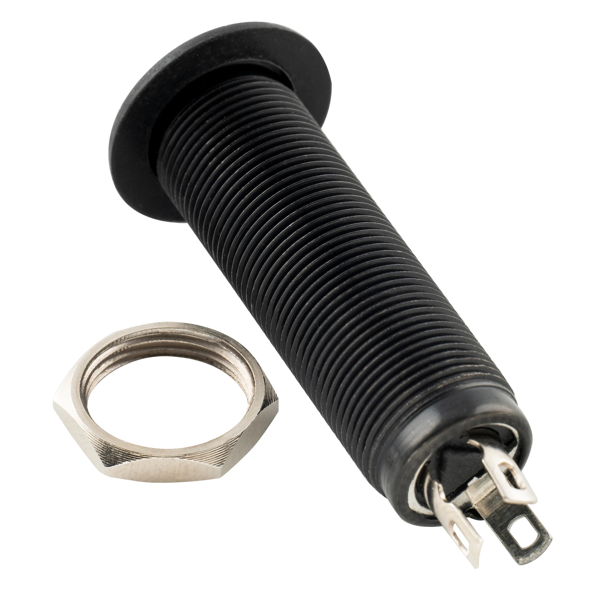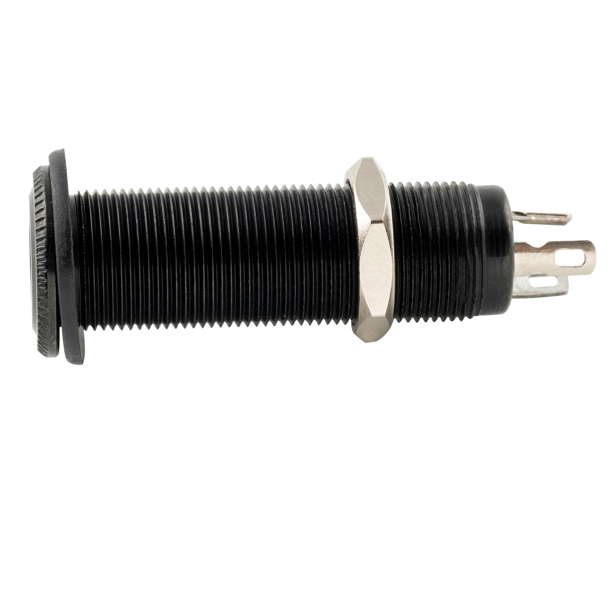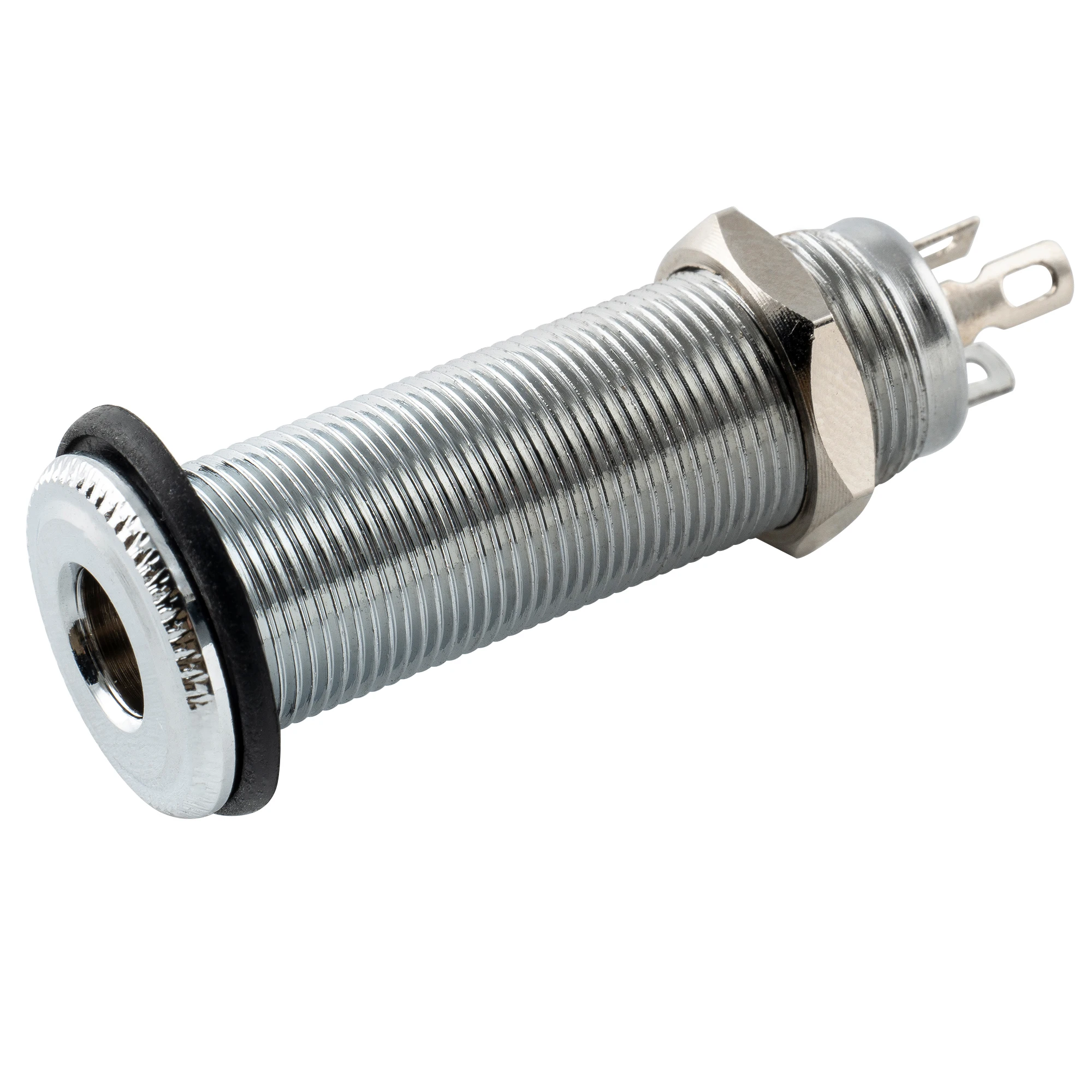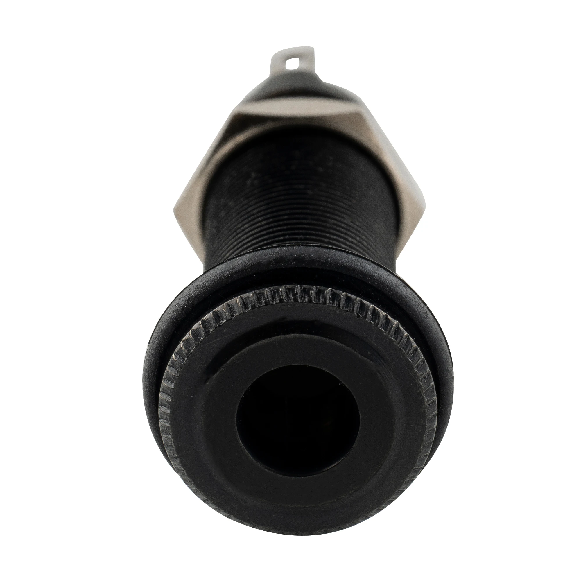 - This robust, cylindrical jack features a matte black or chrome finish with a grooved surface for a secure grip and an industrial aesthetic that elevates your instrument's look and feel.