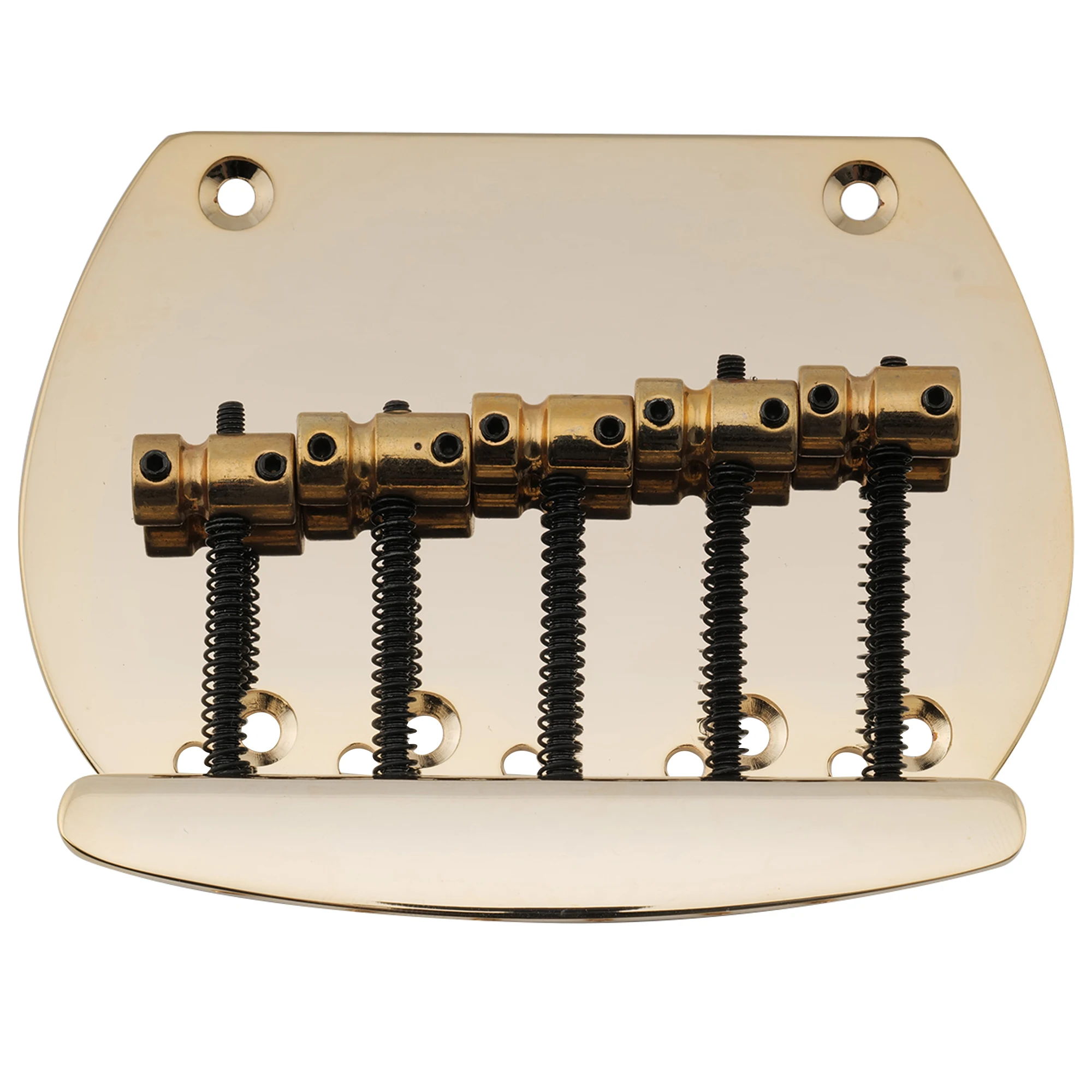 Enhance your bass guitar with this durable Musiclily Pro 64mm Steel Dual Load 5-String Bass Bridge, compatible with Musicman-style and similar basses. Crafted from high-quality steel, it measures 106mm long and 83mm wide, featuring six mounting holes for easy installation. The bridge supports both top loading and string-through-body configurations, with a string spacing of 64mm. Available in sleek Chrome, Black, and Gold finishes, it offers reliable stability and improved sustain, making it an ideal choice for upgrading or replacing an existing bridge on your 5-string bass. Package includes the bridge, mounting screws, and a wrench for a straightforward setup.