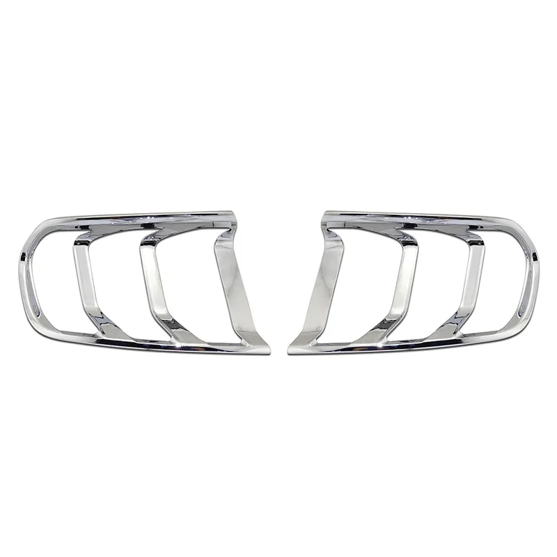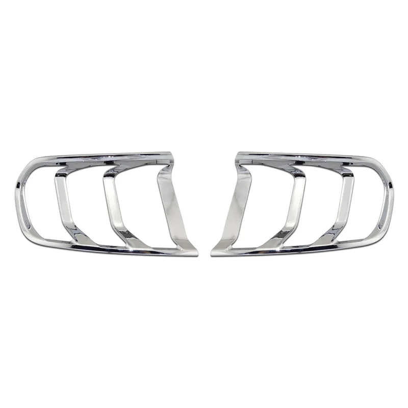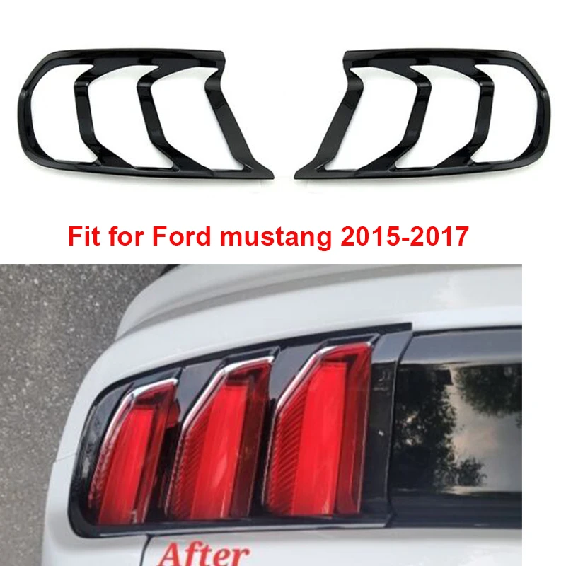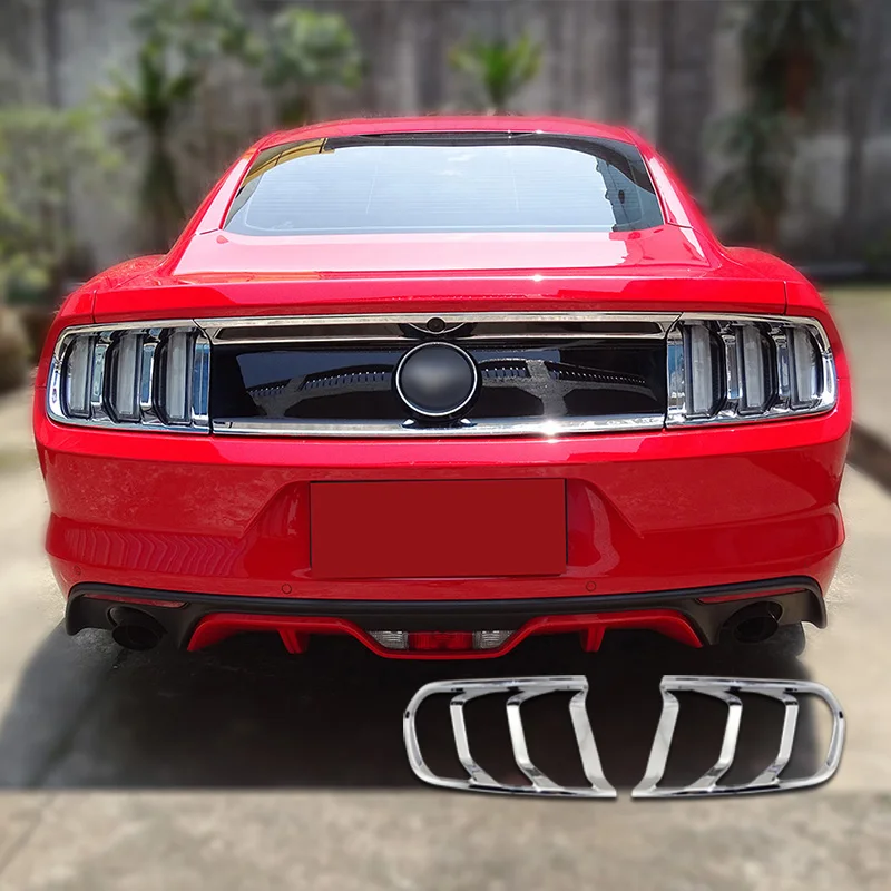 Enhance your Ford Mustang's rear with these sleek and modern decorative tail light frame covers, designed for 2015-2017 models. Made from durable ABS plastic, they feature a high-quality, glossy finish available in black or chrome. The smooth, oval-shaped design complements the vehicle’s sporty aesthetic, while the symmetrical layout ensures a perfect fit on both sides. These covers are easy to install, thanks to pre-applied 3M adhesive tape, requiring no drilling or cutting—simply peel and stick. They are UV-protected to resist fading, unaffected by extreme temperatures or regular car washes, guaranteeing long-lasting performance. When installed, they create a striking contrast that elevates your car’s aggressive look, giving it a distinctive custom appearance and that refined, modern touch you desire.