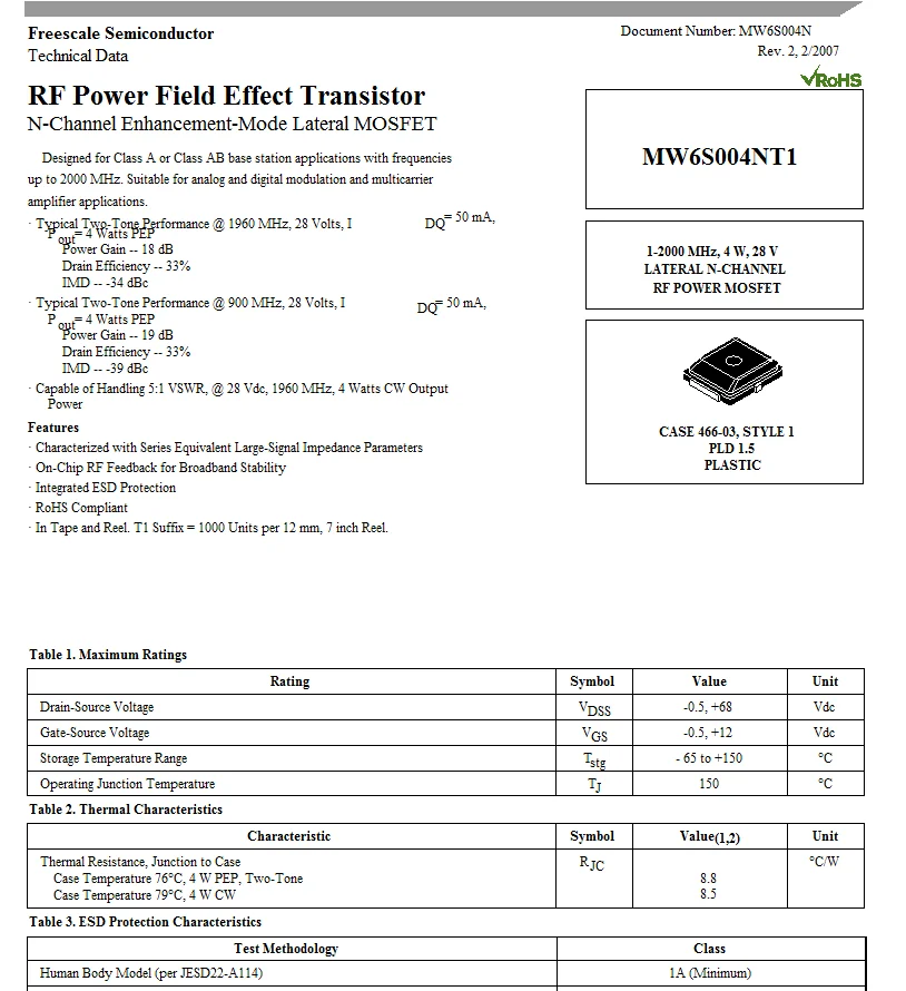 MW6S004NT1 RF Power Amplifier Chip 4W L-band