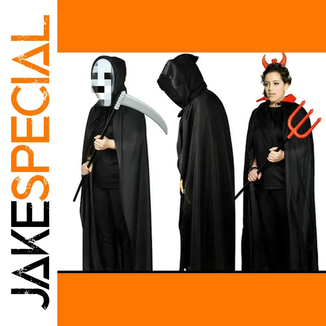 Step into the realm of mystery and magic with this unisex hooded cloak, perfect for adding a touch of mysticism to your costume collection. Crafted with soft fleece fabric, it offers both comfort and warmth for any themed event. Whether you're imagining yourself as a witch, wizard, or mythical creature, this black cape with its flowing, draped design elevates your look effortlessly. Its long length, reaching the ankles or floor, creates a haunting silhouette that captures attention and imagination. You’ll feel confident and authentic, thanks to its unisex fit and simple, elegant style. Ideal for Halloween, cosplay, or themed parties, this versatile cape transforms your costume into something enchanting.