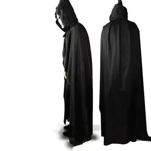 Join countless others in transforming your look instantly. Whether for Halloween, cosplay, or theatrical role-play, this cloak elevates your outfit with its flowing, shadowy presence. Imagine yourself confidently striding into your themed event or costume party, capturing everyone's attention with your enchanting appearance. Its soft fleece texture and simple yet striking silhouette make it a versatile addition to any character or theme. Don’t wait—make this mystical, black hooded cloak yours now to create memorable, captivating moments at your next costume occasion.