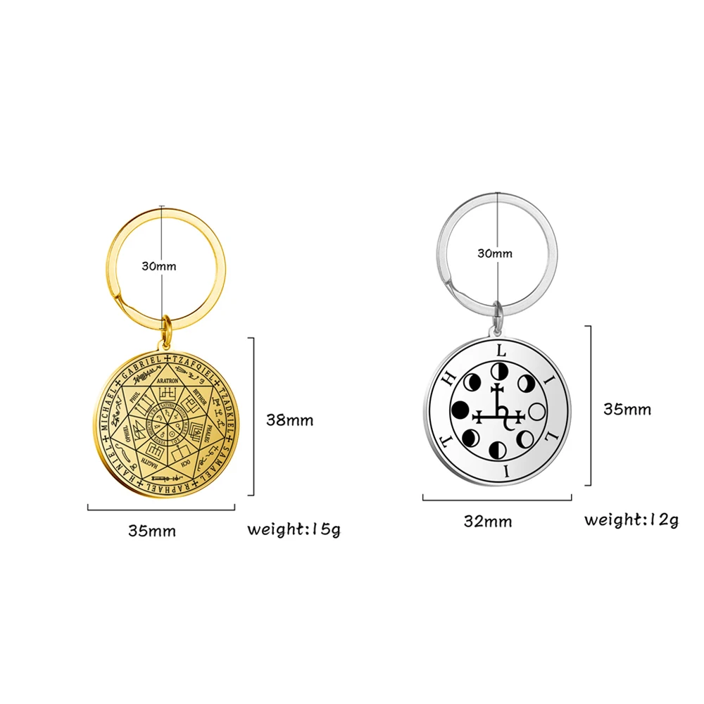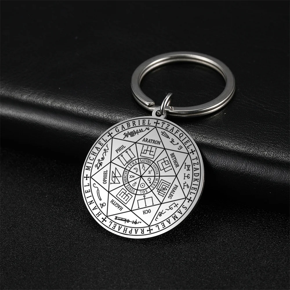 Imagine owning a piece that seamlessly blends timeless mysticism with modern fashion. This this stainless steel keychain features a vintage-inspired design that captures attention and sparks curiosity. The detailed Seal of the Seven Archangels and Saint Michael motif adds an aura of power and spiritual significance. Available in striking gold or silver finishes, each pendant showcases exquisite engravings of symbols, runes, and sacred names, making it perfect for daily wear or as a meaningful gift. Crafted from durable stainless steel, it resists rust, corrosion, and deformation, ensuring longevity. Its versatile size options, 35x38mm or 35x32mm, make it an ideal accessory for those who appreciate elegant, symbolic jewelry with spiritual depth.