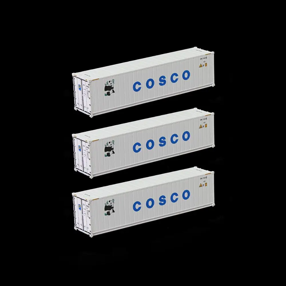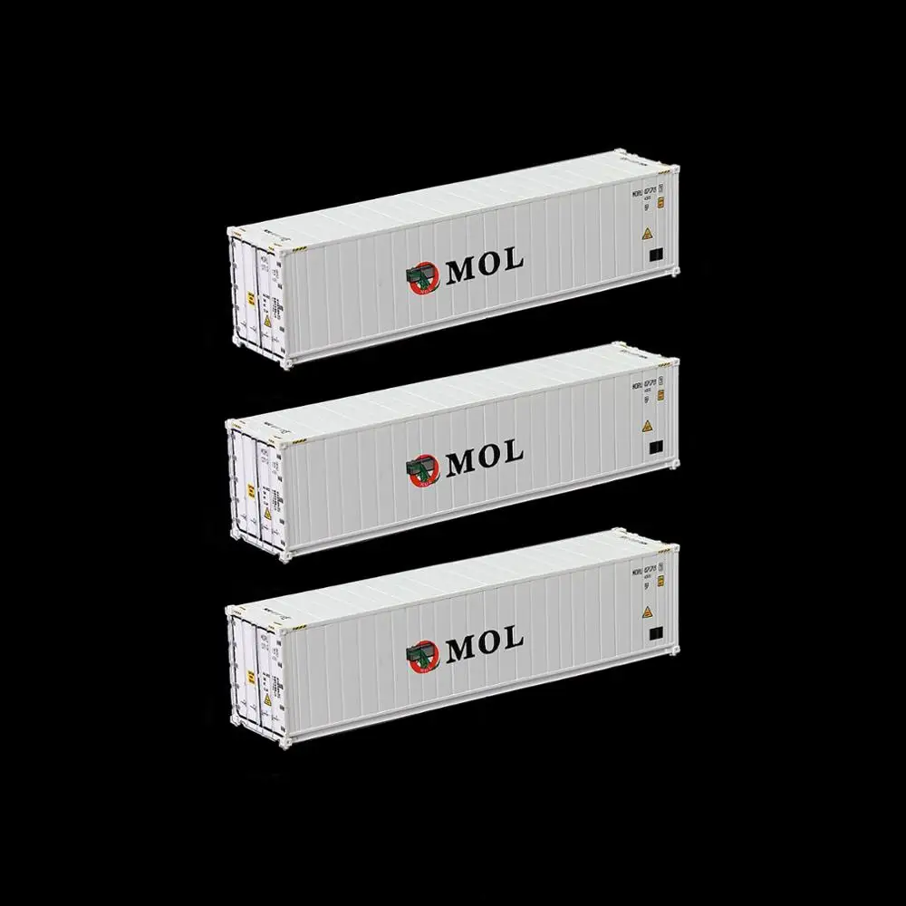 - The set includes three identical containers with exclusive branding options, such as COSCO, MOL, MSC, and YANG MING, adding varied visual interest.
