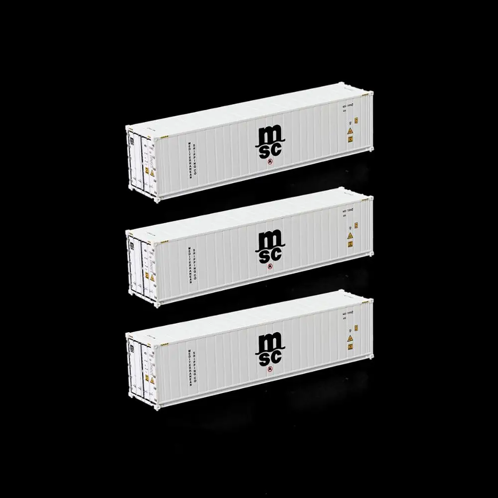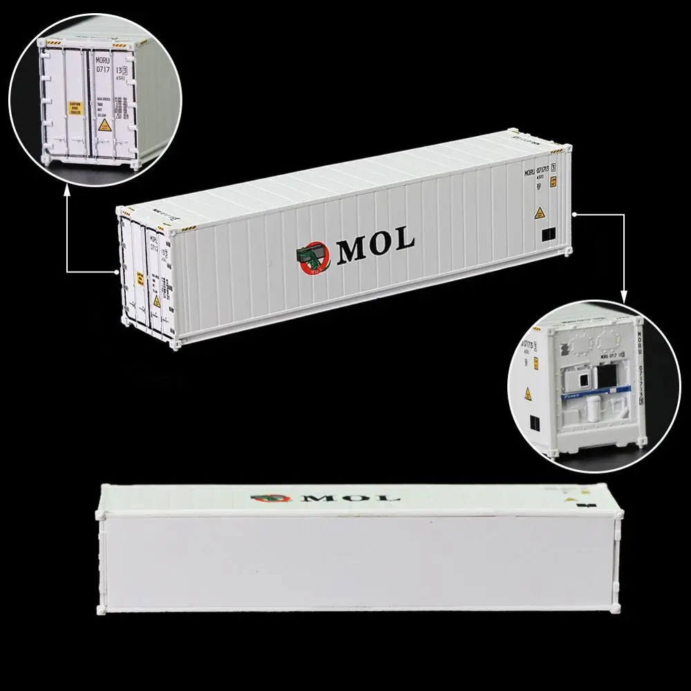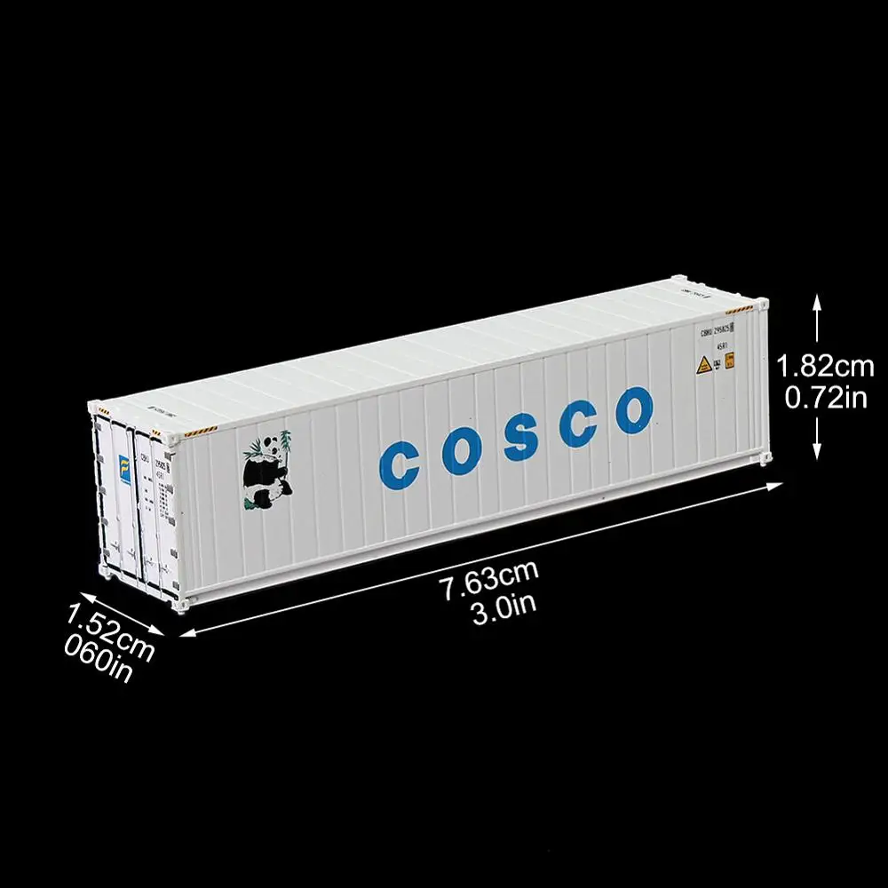 Experience the realism and detail of these miniature cargo containers, perfect for model railway enthusiasts and collectors. The set includes three identical N scale (1:160) refrigerator cargo containers, each approximately 40 feet long, designed to enhance your layout with true-to-life shipping details. Crafted from durable ABS plastic, these models feature crisp, clean surfaces with accurate ribbing and corner fittings that mimic real-world containers. Their bold branding, including COSCO, MOL, MSC, and YANG MING logos, adds vibrant color accents and authenticity. Whether stacking or arranging in a cargo yard, these containers bring a high level of detail and realism to your scene, making your model train setup more immersive and visually engaging.