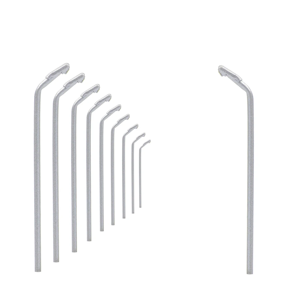 Enhance your N scale (1:150) layout with these 10 metal street lamps, each approximately 4 cm tall, featuring sleek coppery’ posts and bright white SMD LEDs emitting a star-like glow at 3V, 20mA. Designed for realism, these lamps include wires and LEDs, suitable for both AC and DC power sources. For operation at 12V or 16V, easily connect a compatible resistor (supplied free) in series to ensure safe functioning. Perfect for railway scenes and urban layouts, these miniature lamps combine elegant industrial design with reliable illumination, making your model environment more vibrant and authentic.