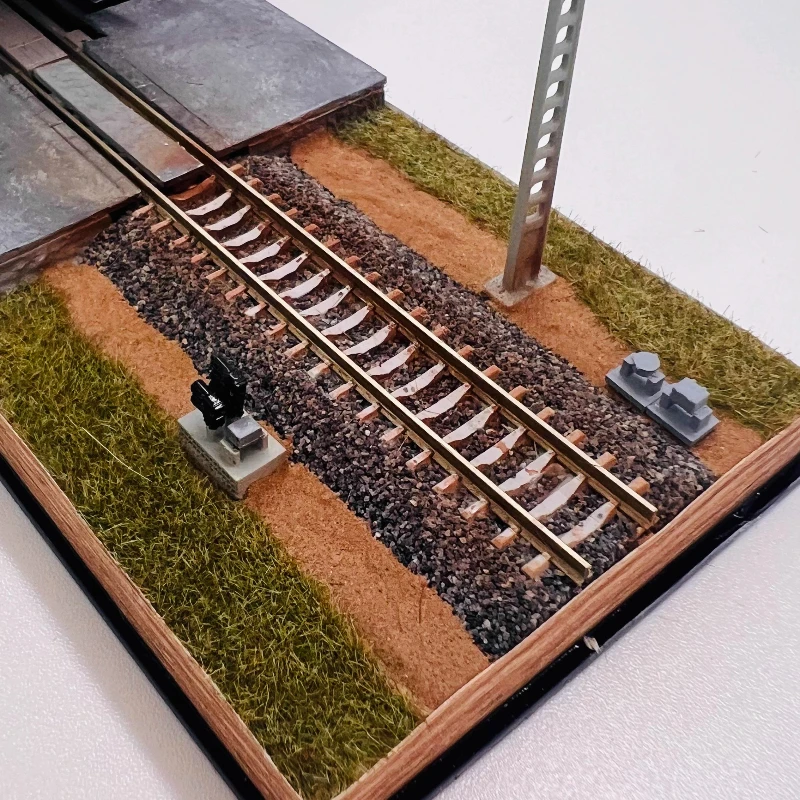 - Attached to the scene is a short section of metallic track on brown sleepers, providing an authentic railway setting within your model landscape.