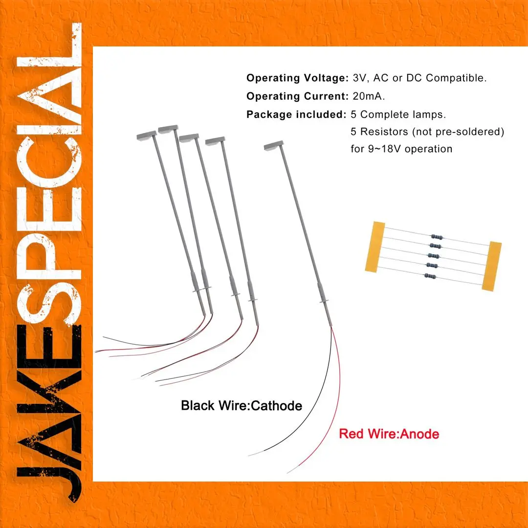 - The set includes five complete lamps with wiring and five resistors, designed for safe operation at 9-18V using proper series resistors for current regulation.