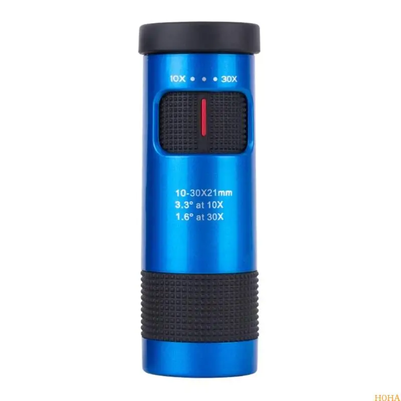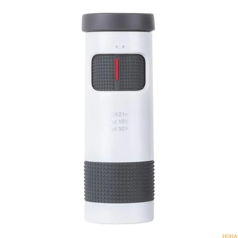 Experience the thrill of nature with this versatile and stylish monocular designed for birdwatchers, hikers, and outdoor enthusiasts. Its sleek cylindrical shape and vibrant colors—white, black, and blue—make it visually appealing and easy to handle. The textured rubber grip ensures a secure hold during use. With a zoom range of 10x to 30x and a 21mm objective lens, this device delivers sharp, detailed images even at great distances. The recessed eyepiece adds to its streamlined profile, making it comfortable to view for extended periods. Its compact size makes it perfect for travel, and its durable PVC construction withstands outdoor conditions, so you can rely on it during your adventures. Now, step closer to nature and elevate your outdoor experience effortlessly.