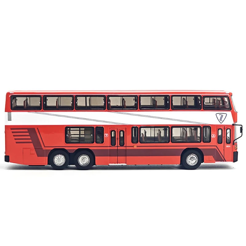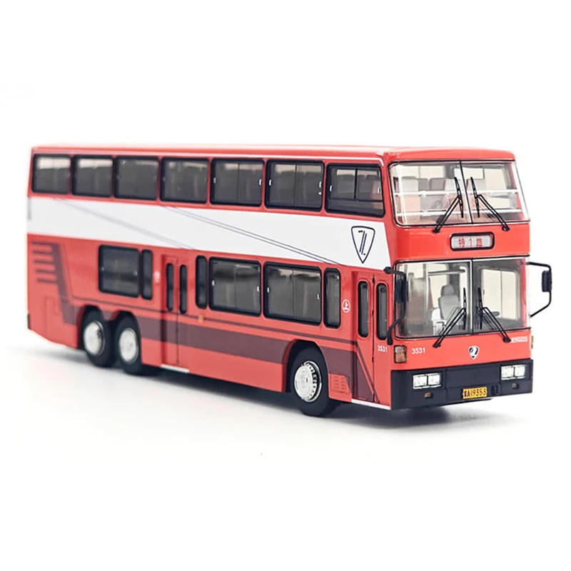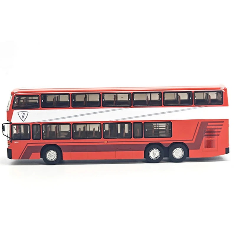 Imagine adding a touch of nostalgia to your collection with this exquisite diecast alloy model of the Nanjing Jinling double-decker bus. Crafted with meticulous detail, this collector’s piece measures 20cm long, 4.5cm wide, and 6.5cm tall, making it perfect for display on shelves or desks. Its vibrant red exterior is accentuated by black details around the windows and base, complemented by a striking white diagonal stripe along the side. The upper deck features clear plastic windows with black framing, revealing a refined interior view. The front showcases a grey panel with an elegant logo and model number, while durable black side mirrors extend gracefully. This non-electric model is made from alloy and ABS plastic, offering a sturdy, high-quality collectible that evokes classic nostalgia, suited for fans over 14 years old.
