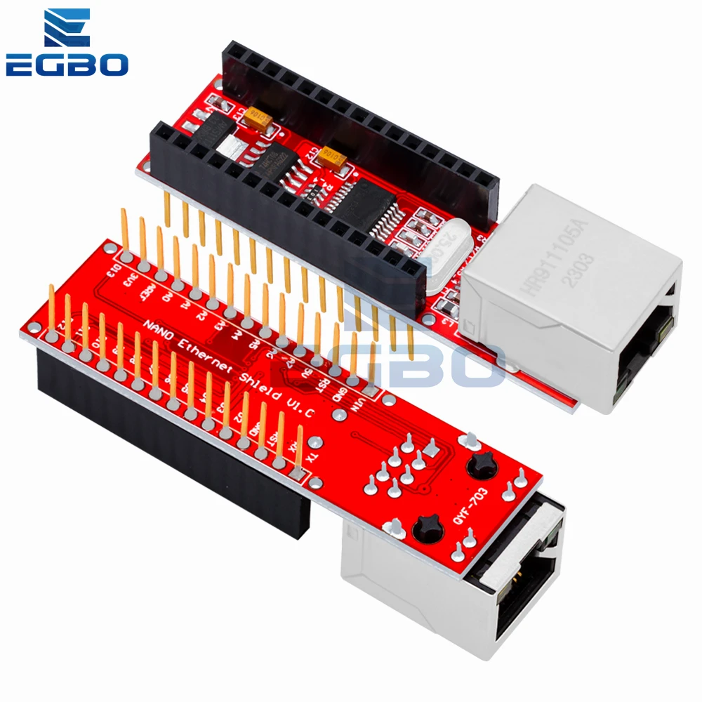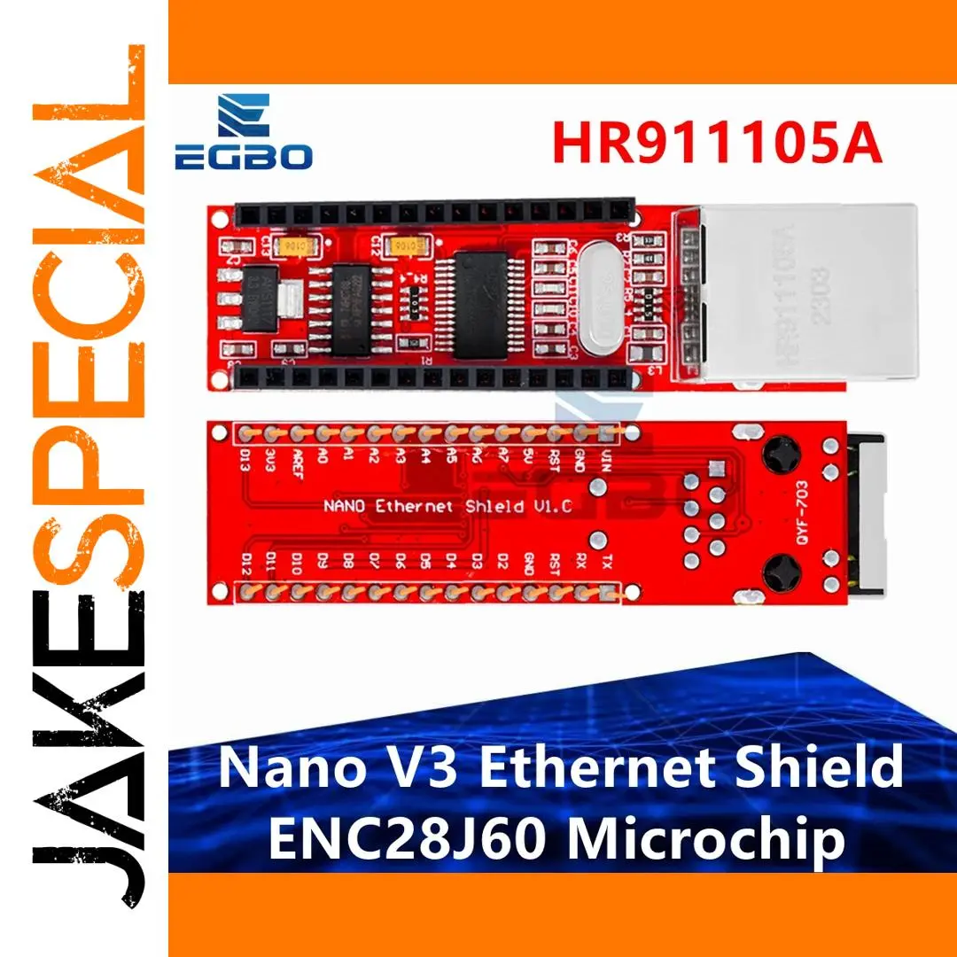 - This shield features a vivid red PCB with a sleek black ENC28J60 Ethernet controller from Microchip, ensuring reliable network communication for your Nano 3.0 projects.